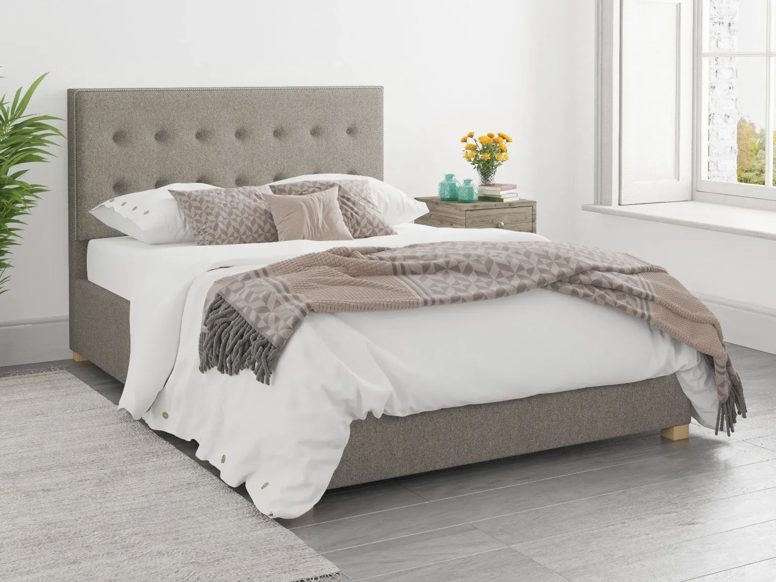 The Ottoman Bed combines generous storage with its gas-powered lift mechanism, featuring chunky upholstered panels and a deep foam padded headboard. Quality sprung slats with multi-layer construction provide enhanced comfort and mattress longevity, while the gas pistons enable effortless access to the large storage compartment. The contemporary headboard offers support and comfort, and the hand carved varnished wooden feet add durability. W91 x D209 x H106.5 cm