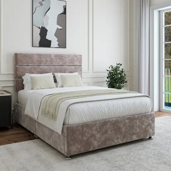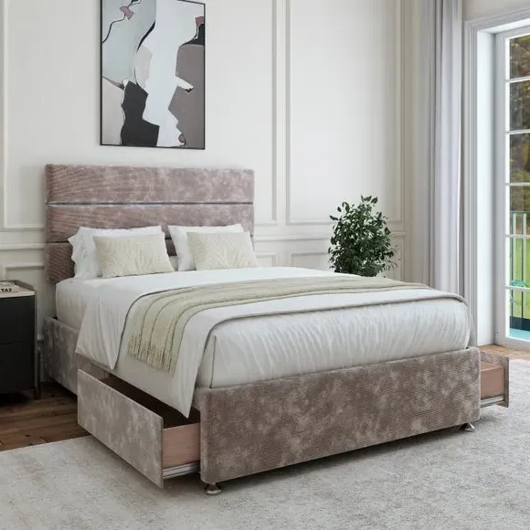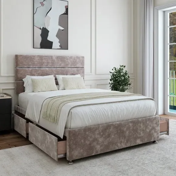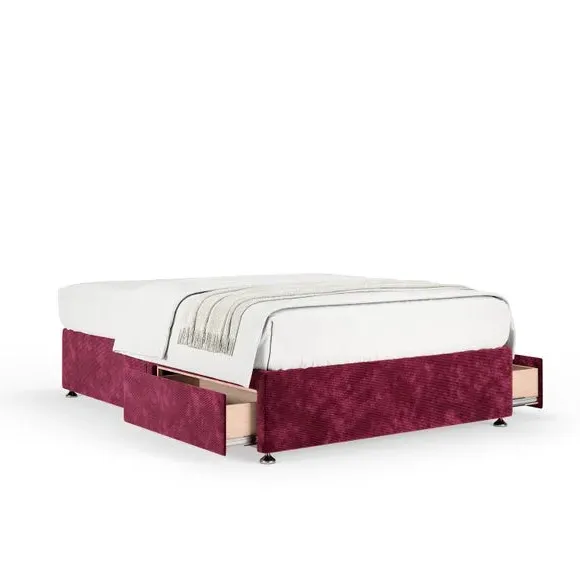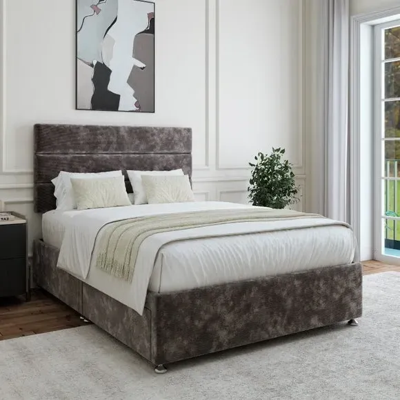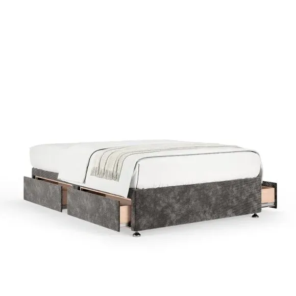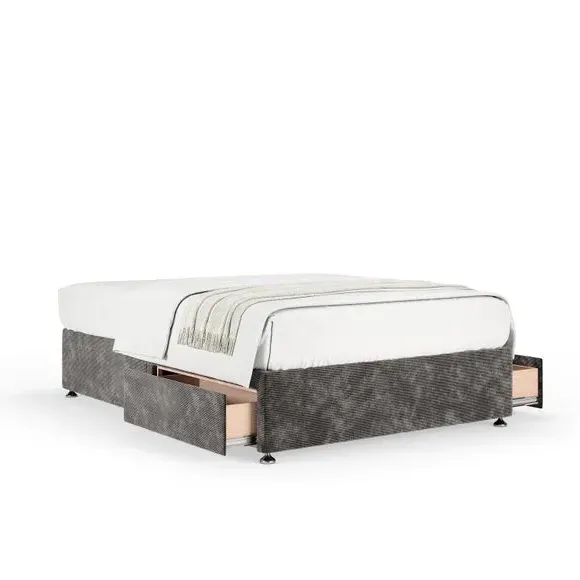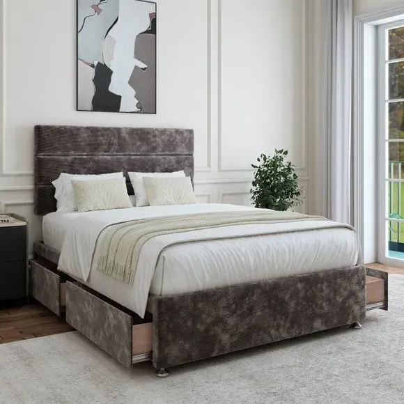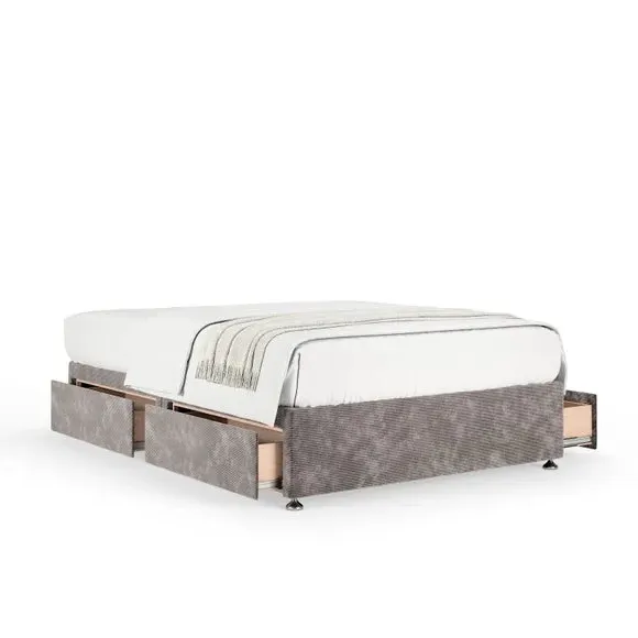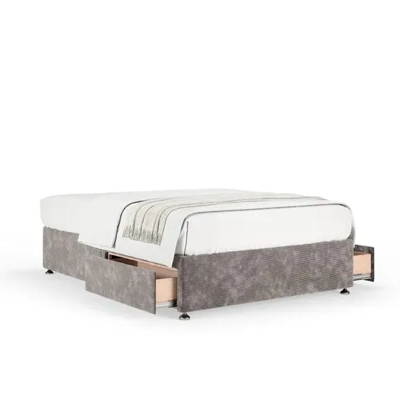 * Solid platform base* Soft chenille upholstery* Multiple storage options available* Base only no headboard included Upholstered in a luxurious chenille fabric, this divan base adds a touch of elegance to any bedroom decor. Its solid platform top provides robust support for your mattress, ensuring a comfortable and restful sleep. Designed to suit a variety of bedroom layouts, this universal divan base offers optional storage configurations, making it an ideal choice for keeping your space tidy and organised.