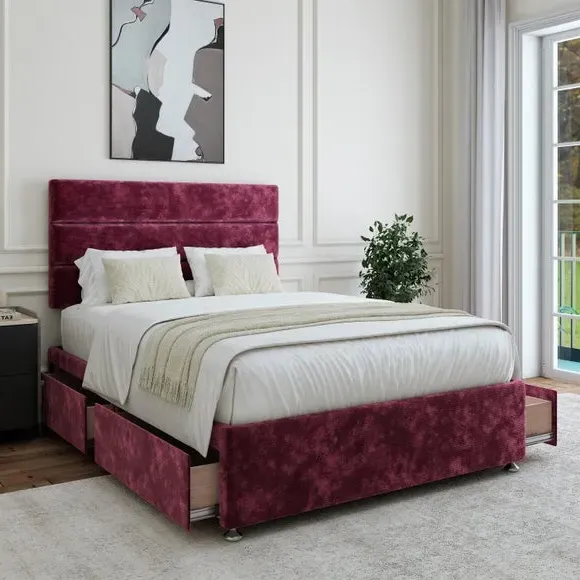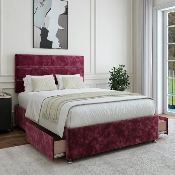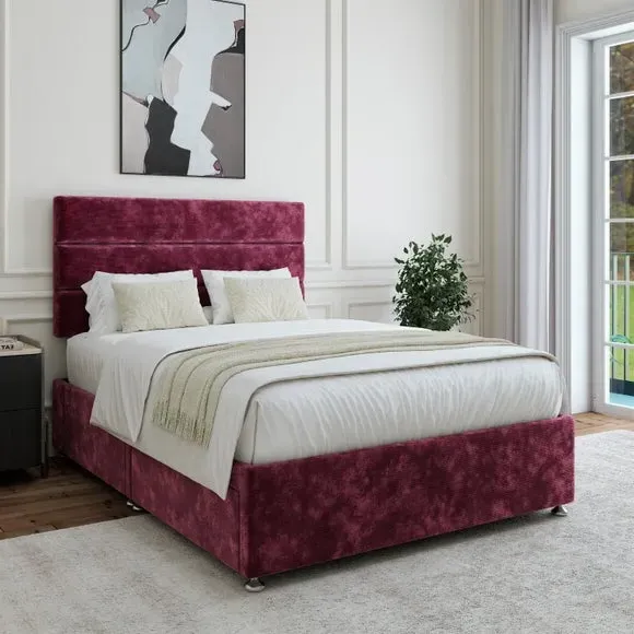 The divan base combines robust support with soft chenille upholstery in a rich plum finish. Its solid platform construction provides stable mattress support, while the optional storage configurations help maintain an organised space. The universal design suits various layouts, and the chenille fabric adds comfort and durability.