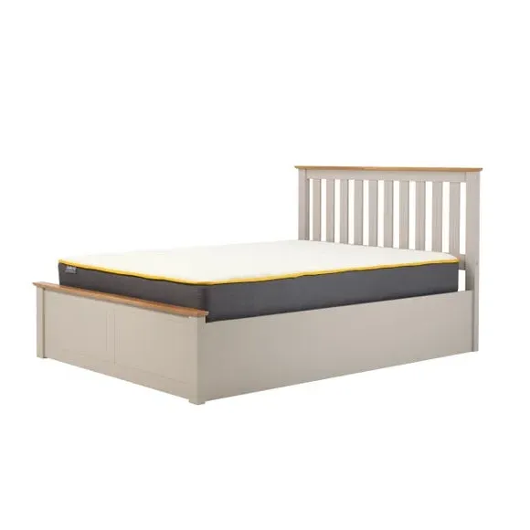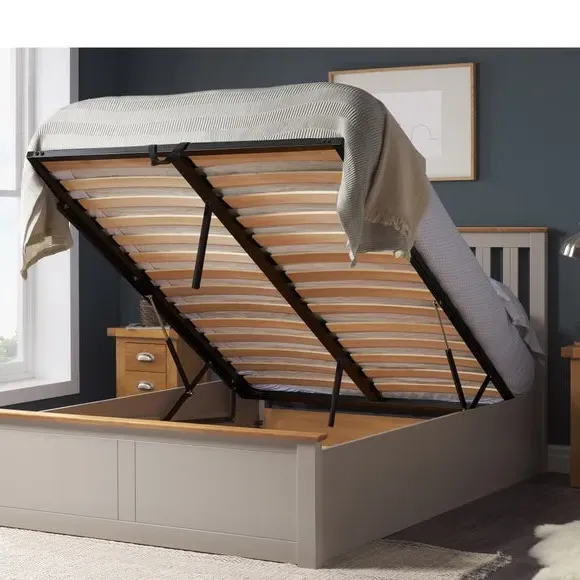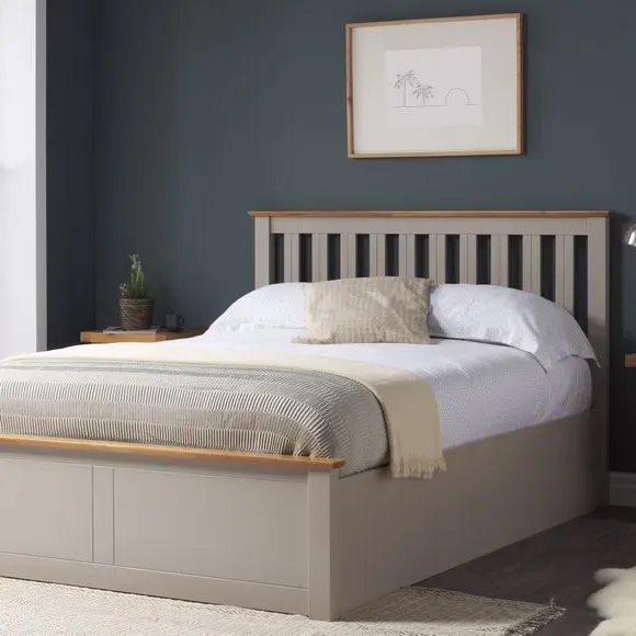 * Durable wooden construction with a painted finish* Sprung slatted base- for added support and comfort* Timeless slatted headboard and solid low footboard* Gas piston lifting mechanism that allows for easy opening from the bottom of the bed* Ample internal storage with two sections This stunning bed frame features spacious storage space beneath the bed, gas pistons to allow for easy opening and sprung slats to ensure fantastic mattress support and ventilation. Please note, unfortunately we cannot deliver this item to Northern Ireland or the Channel Islands.