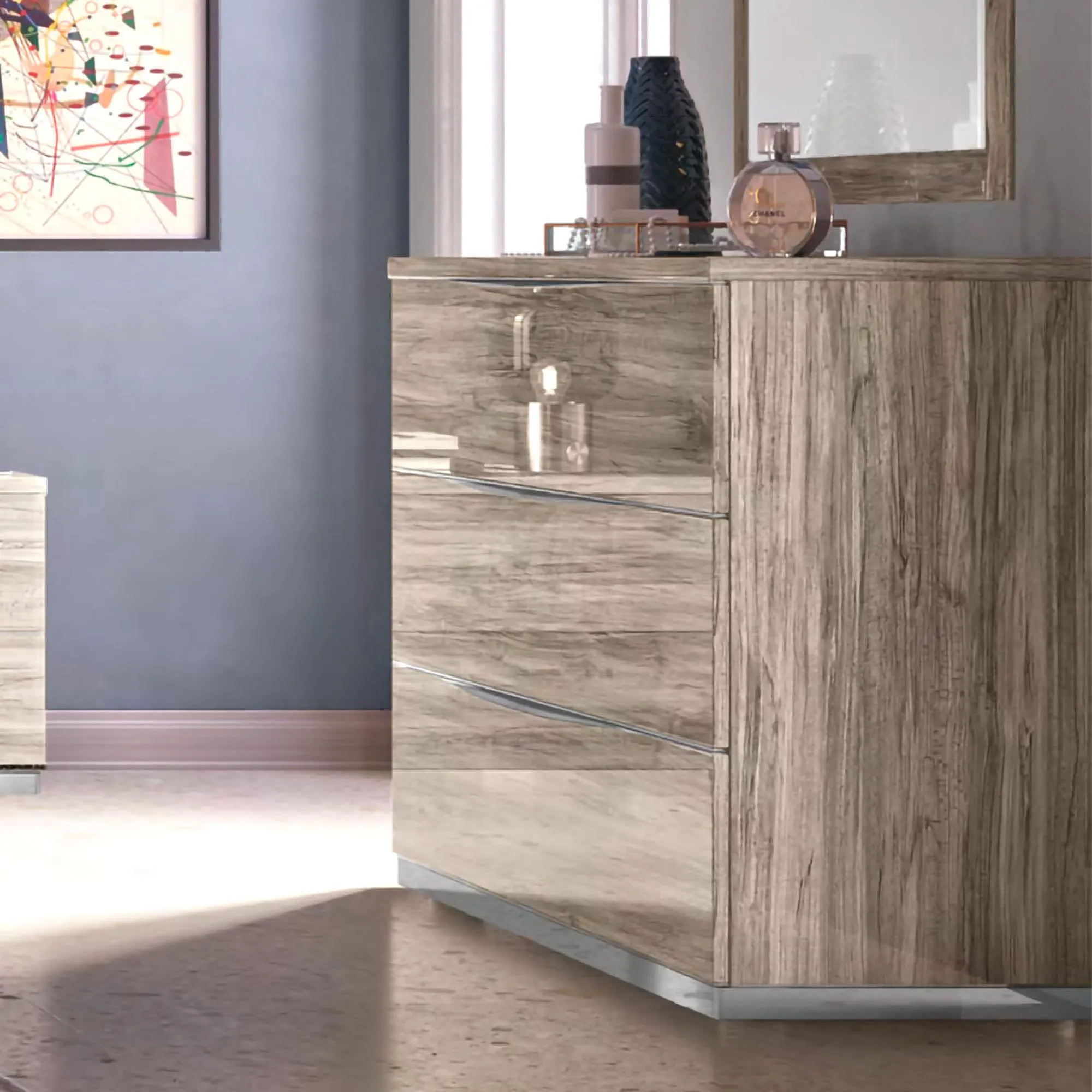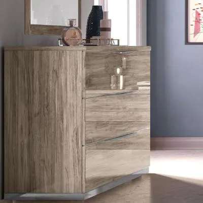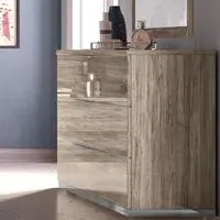 The Laura wall mirror features a square design with oak grain effect framing. Its grey finish adds depth to bedroom walls while reflecting natural light throughout the space. The mirror coordinates with the Laura bedroom collection, and the wall-mounted design saves valuable floor space.