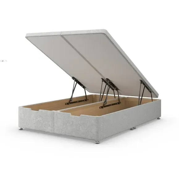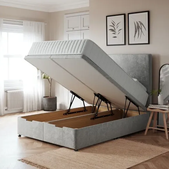 The ottoman bed frame provides excellent support with its high quality timber base, upholstered in soft grey chenille fabric. Its end-opening storage compartment maximizes underbed space, while the divan construction suits all headboard types. The chenille upholstery offers comfort and style, and the timber frame delivers dependable strength.