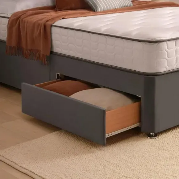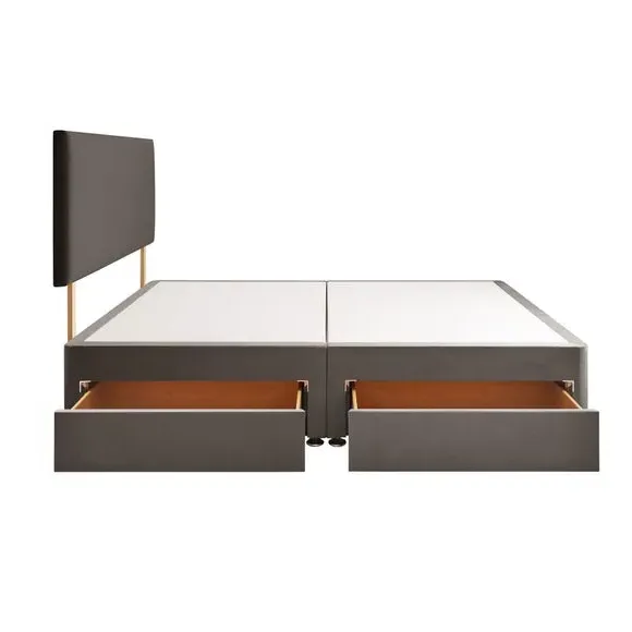 The divan bed combines comfort with its 800 pocket spring mattress and mounted velvet headboard. Its Mirapocket technology provides individual spring support, while the zoned system ensures even weight distribution and spinal alignment. The medium-firm mattress features hypoallergenic filling layers with a soft knitted cover, and the edge-to-edge support construction delivers undisturbed sleep.