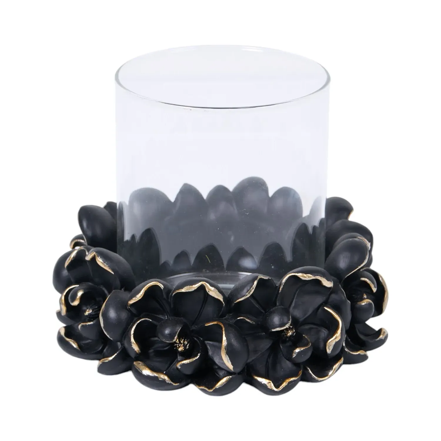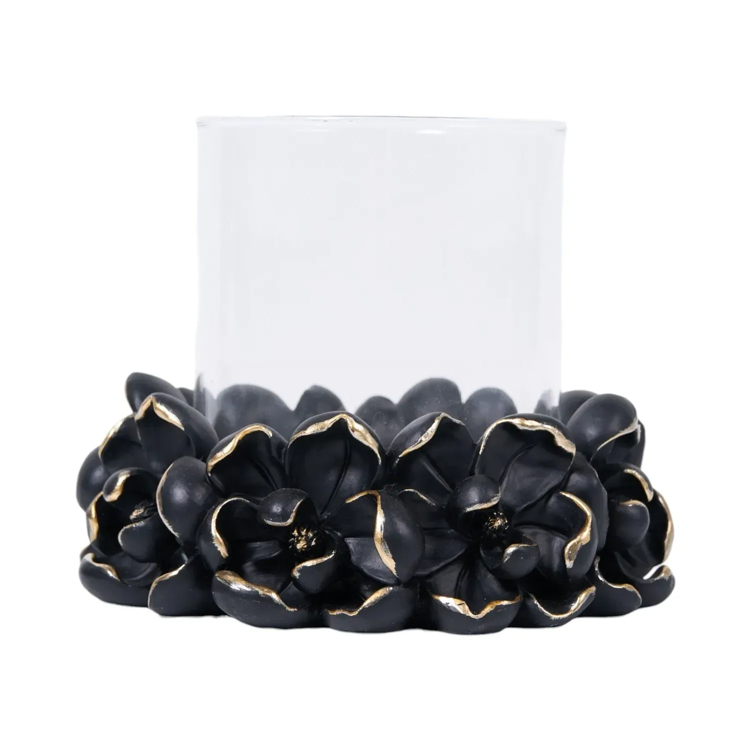The Crystal Style Candle Holder offers sophisticated design with its crystal-inspired construction in sleek black finish. The faceted surface provides light reflection capabilities, while the durable materials ensure lasting appeal. Its compact form suits accent tables and shelves, creating ambient lighting with understated charm.