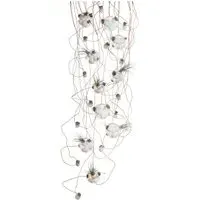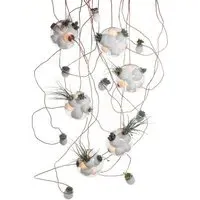 The Series 38 pendant light 3 pieces by Bocci features a large glass blown sphere with a multitude of haphazard interior cavities, which intersect and interact with each other in unique and unpredictable ways. As pictured, some of these cavities are actually big enough for house plants like succulents, cacti and air plants making this light ideal for plant lovers. Striking a balance with plants and lighting, this piece has a fixed length hardwire with copper tubing which allows for you to attach the canopy to your ceiling before inserting the individual cables one by one. Having more than one of these lights would create an eyecatching harmony between your decor and greenery. The Series 38 pendant light 3 pieces suit an eclectic or bohemian aesthetic and are ideal for use in any and all living areas. Available in two canopy options. Two bulb types available. Please view ‘Colours, finishes, and styles’ for ceiling rose examples. Extra cable is available, please email sales@hollowwaysofludlow.com