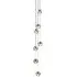 The Series 14 pendant light offers unique character with its handblown cast glass spheres, each containing varying amounts of trapped air bubbles that form as the glass sets. Its frosted cylindrical void creates an artistic snowglobe effect while housing a low voltage bulb, and the textured glass formation diffuses light into soft radiance. The cascading arrangement suits various lighting configurations, while the round brushed nickel ceiling rose provides secure mounting. Available with up to nine pendants for customizable installations.