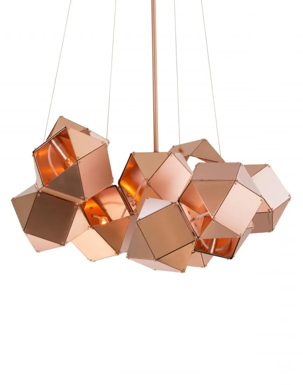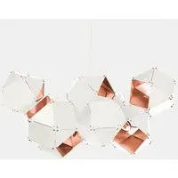 The Welles central chandelier is a modern piece of art that showcases expert artistry. A comibnation of interconnected geometric shapes branch out into a modular system to create a stunning optical illusion. The chandelier is perfect to be placed above a dining room table or as a focus piece in a living room. Handling fees and delivery charges of £295 apply