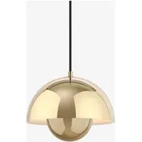 The Flowerpot Pendant VP1 is an iconic design by Verner Panton that seamlessly blends the spirit of the 1960s with a modern aesthetic. This striking pendant light features two semicircular spheres facing each other, creating a captivating silhouette reminiscent of a blooming flower. With its timeless appeal, the Flowerpot VP1 adds a touch of elegance and style to any modern or contemporary interior. Originally designed by Verner Panton in 1969, the Flowerpot VP1 pendant lamp has stood the test of time and remains a beloved fixture in the world of design. Its geometric form, composed of two hemispheres, creates a beautiful and comfortable glow, making it a true icon of lighting design. The name "Flowerpot" pays homage to the peace and love movement of the 1960s, which influenced the cultural landscape of that era. Available in a variety of bold and vibrant colors, the Flowerpot VP1 allows you to infuse your space with a pop of personality. &Tradition''s Flowerpot VP1 Pendant captures the essence of the sixties and continues to inspire and excite with its timeless design. Created by Danish design legend Verner Panton, this pendant light was conceived to spark imagination and create more exciting surroundings. The simple yet captivating design features two hemispheres working harmoniously to conceal the light source while reflecting and diffusing its warm glow throughout the room. The Flowerpot series has found a place in homes, hotels, restaurants, and offices worldwide, offering a warm and inviting ambiance that has delighted people for generations. Whether used individually or clustered together, the Flowerpot VP1 Pendant is a versatile choice that can enhance any space. Hang multiple pendants across a large area to create a cohesive atmosphere, or arrange them in a uniquely shaped cluster for a striking visual impact, perfect for illuminating dining tables or lobbies. Complementing the VP1 pendant, the Flowerpot family includes the slightly larger VP7 pendant, the significantly larger VP2 pendant, and the VP3 and VP4 table lamps, providing a range of options to suit different lighting needs. Experience the enduring allure of the Flowerpot Pendant VP1 and let its timeless design transport you to an era of creativity and imagination. With its iconic silhouette and vibrant color options, this pendant light is sure to become a focal point in any space, infusing it with a sense of style and sophistication. Embrace the spirit of Verner Panton''s vision and elevate your interior with the timeless elegance of the Flowerpot Pendant VP1.
