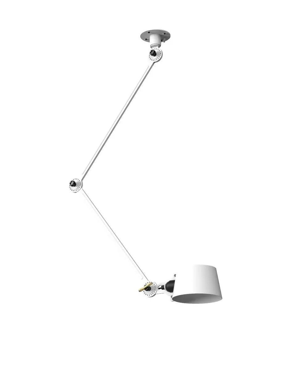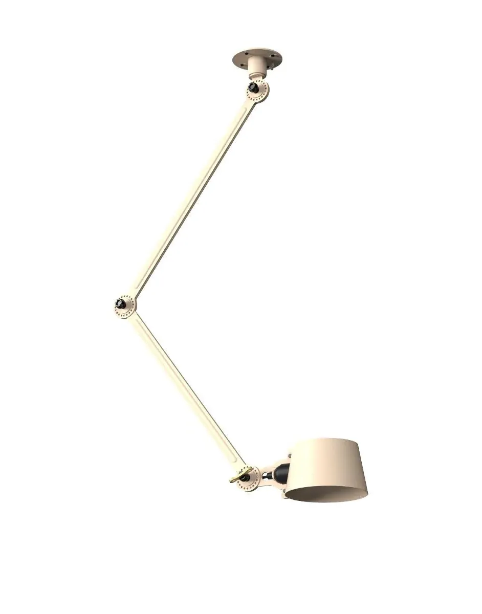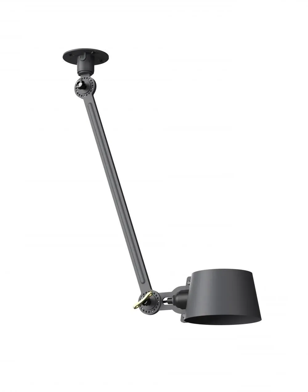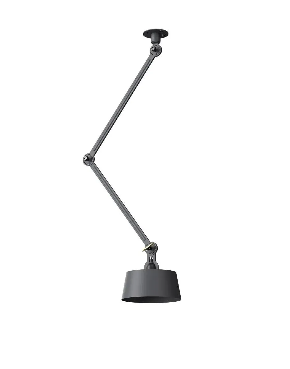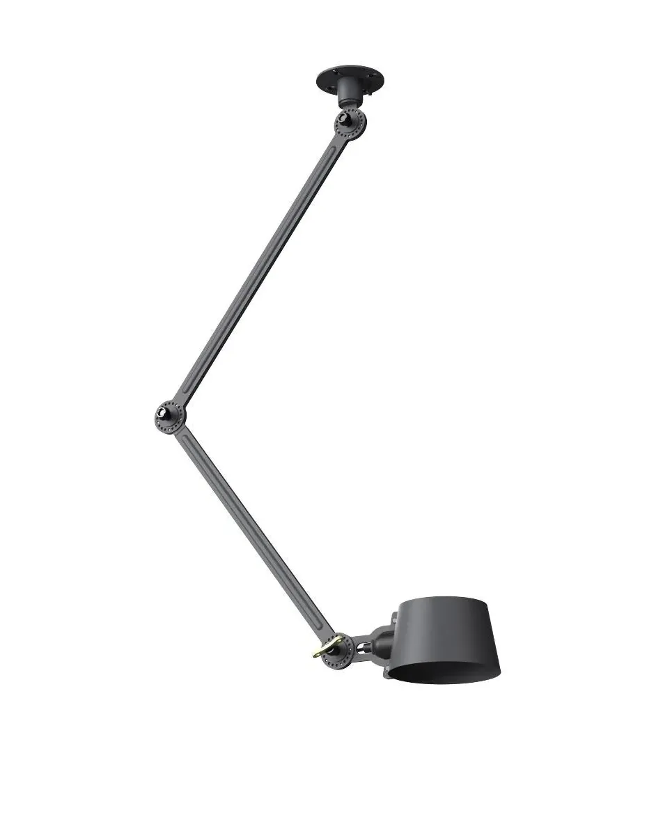 The Bolt Ceiling Lamp offers industrial appeal with its double arm design and under-mount configuration. Its solid brass accent finish provides durability and visual contrast, while the smokey black color adds depth to any space. The adjustable arms allow for directional lighting, and the robust construction ensures long-lasting performance.