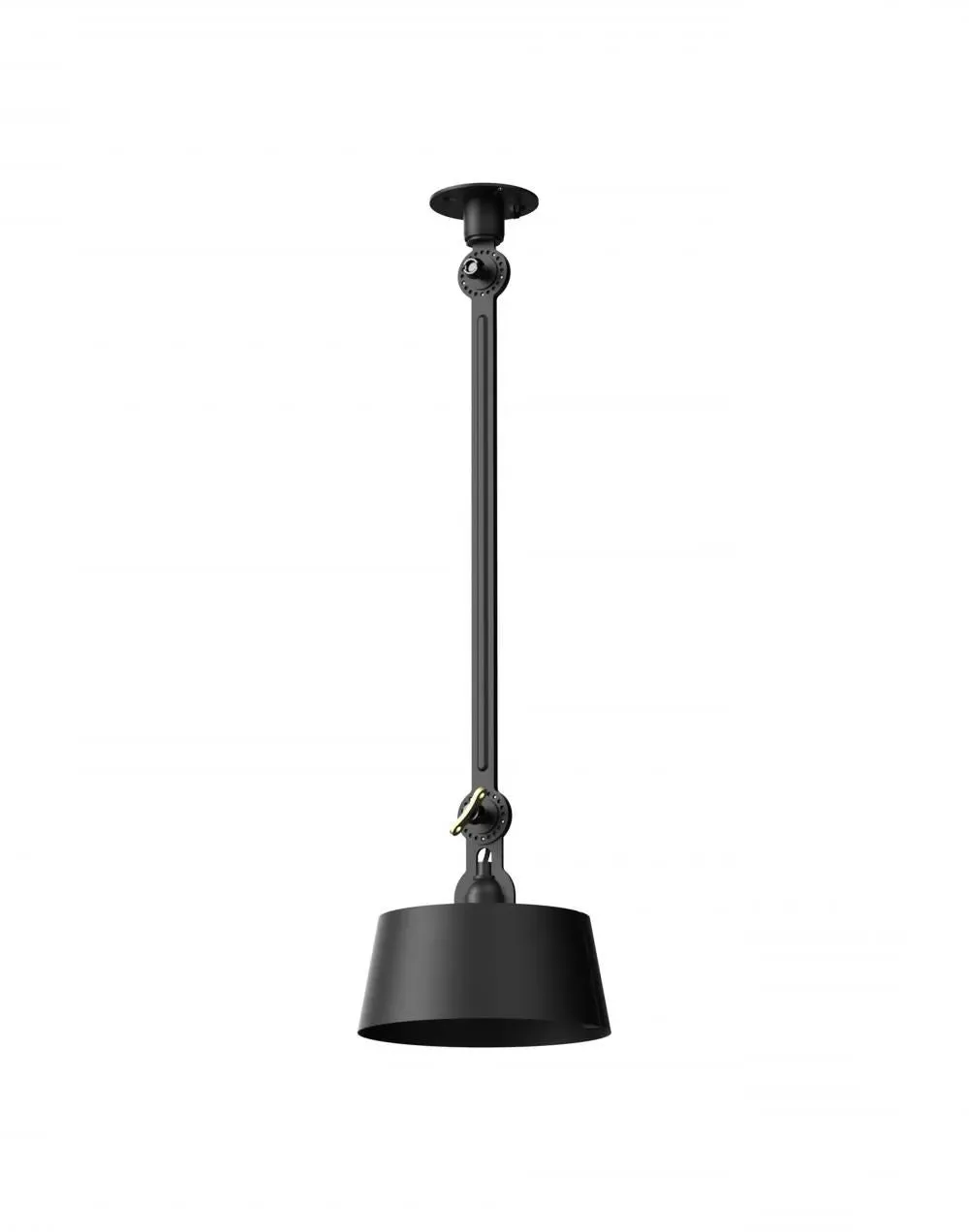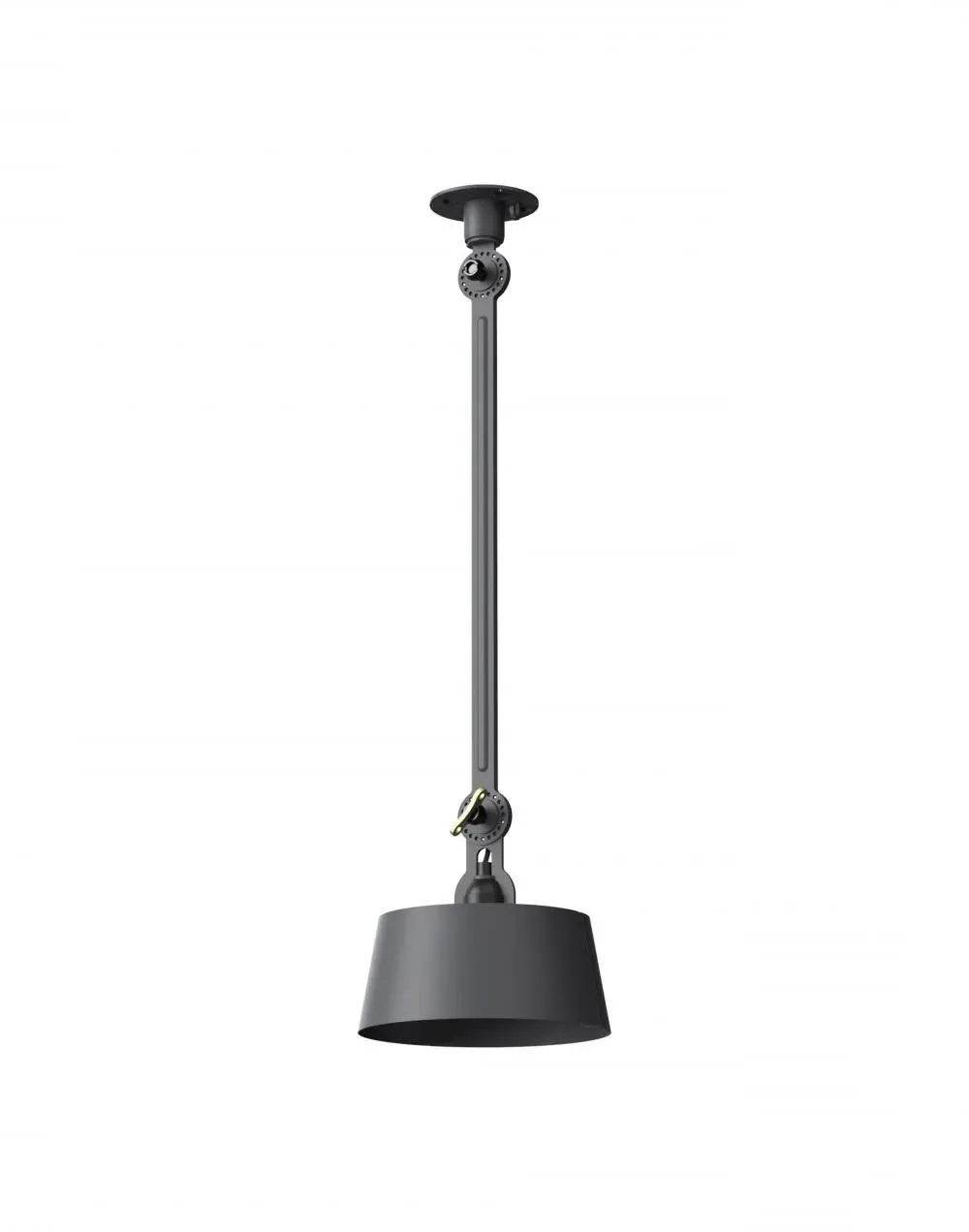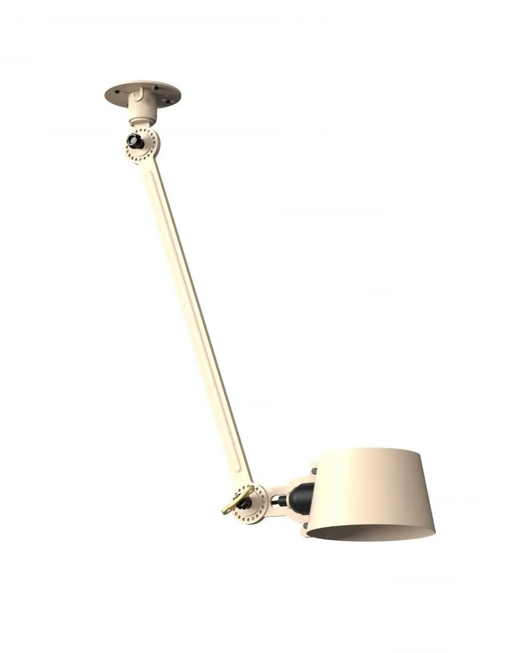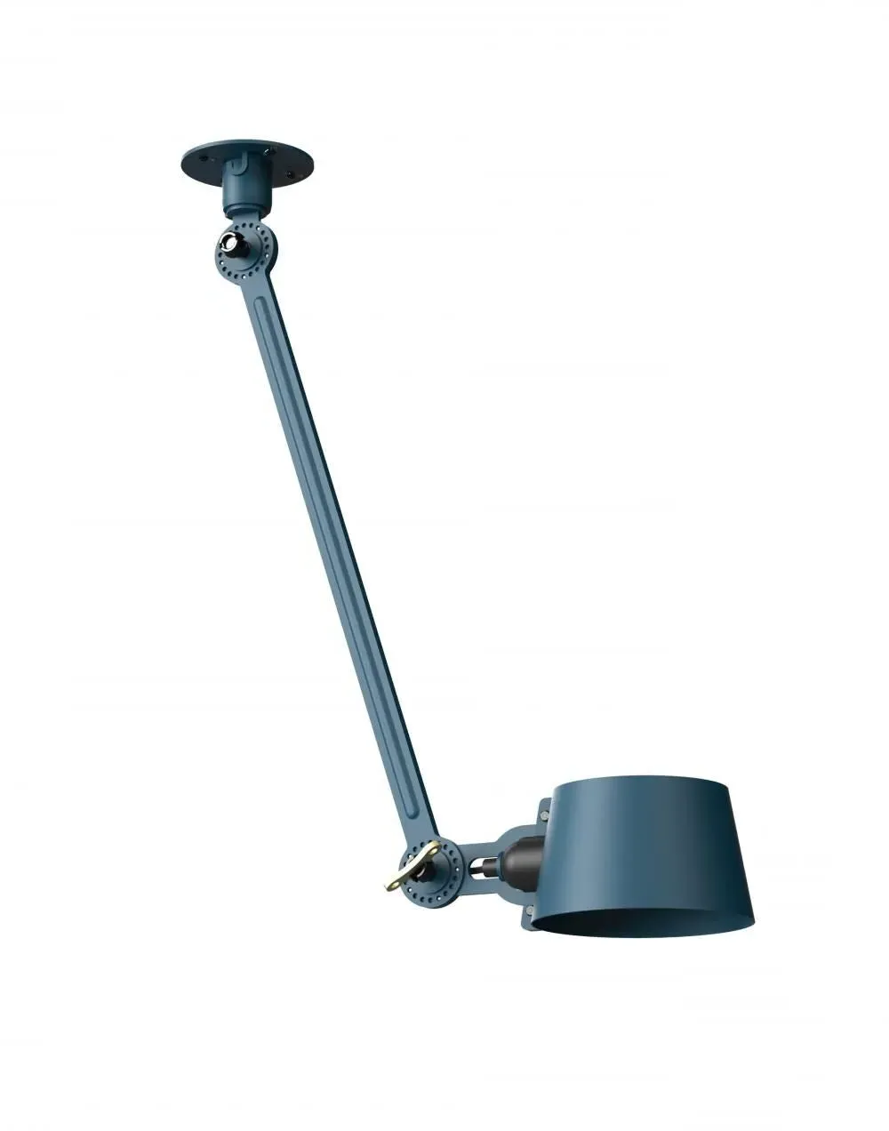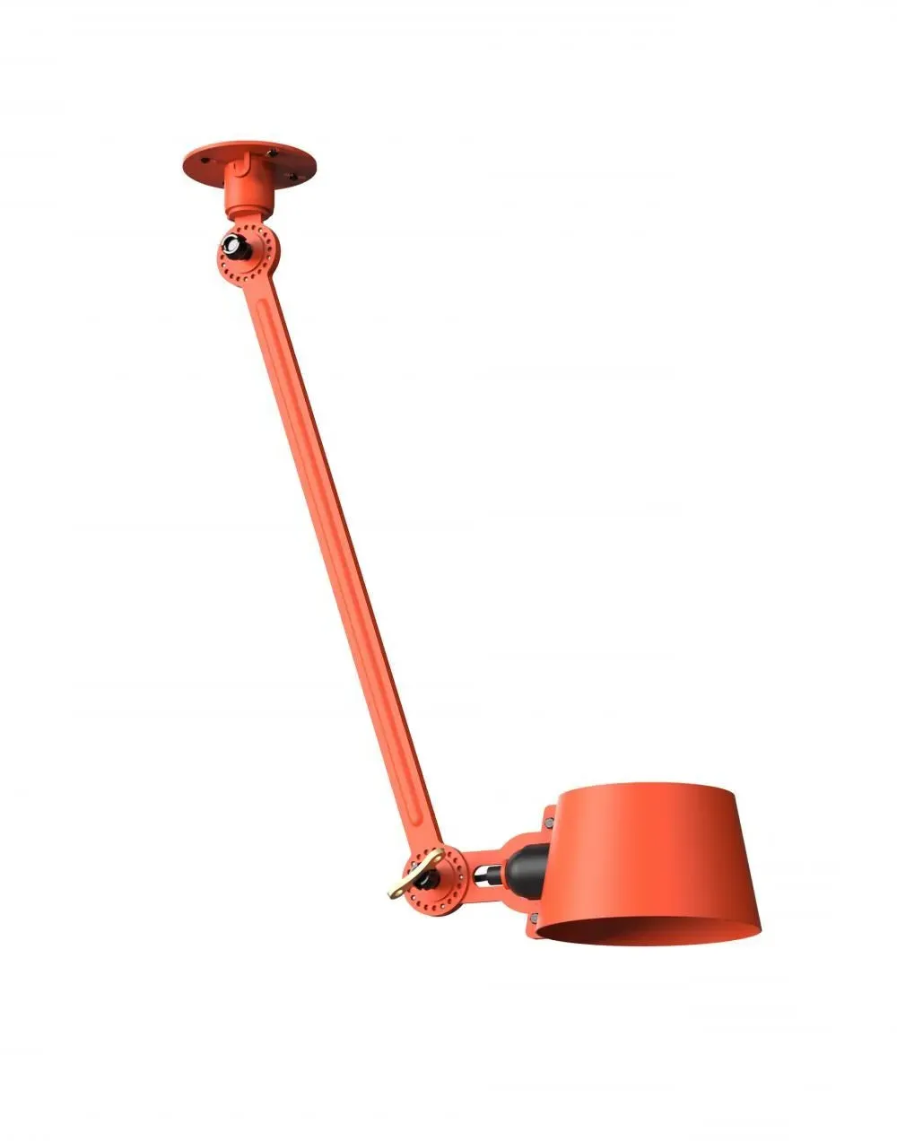 The Bolt Ceiling Lamp offers industrial appeal with its double arm design and under-mount configuration. Its solid brass accent finish provides durability and visual contrast, while the smokey black color adds depth to any space. The adjustable arms allow for directional lighting, and the robust construction ensures long-lasting performance.