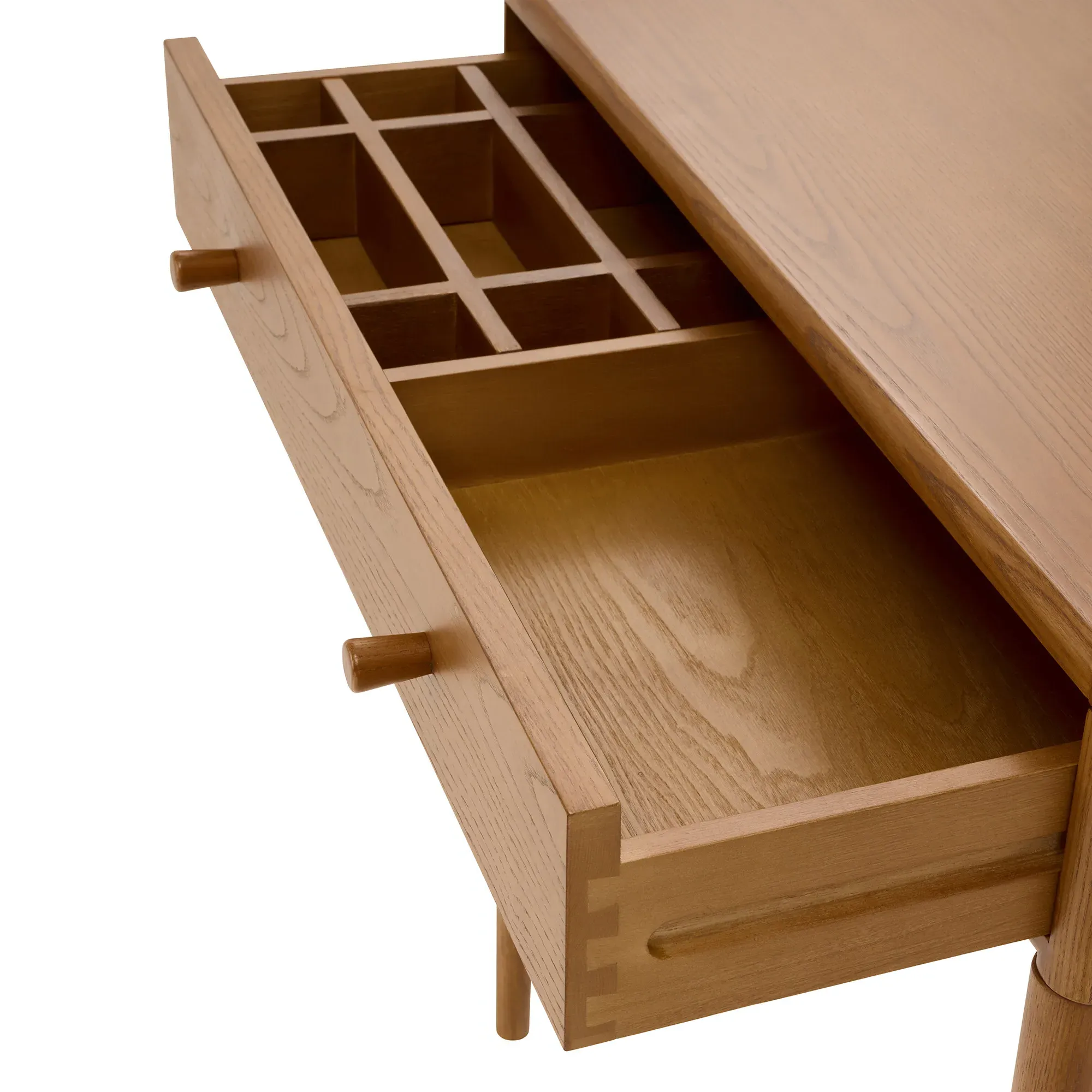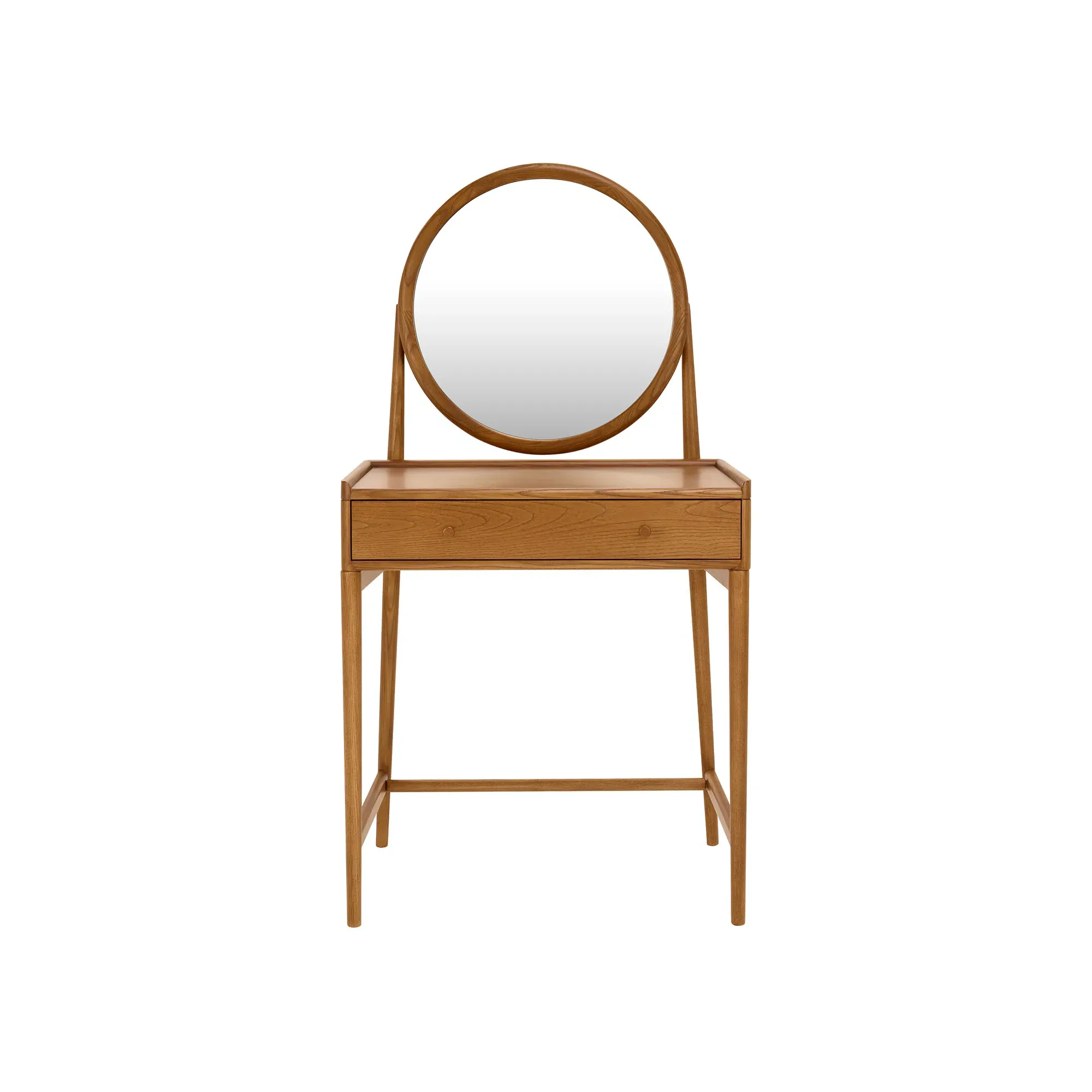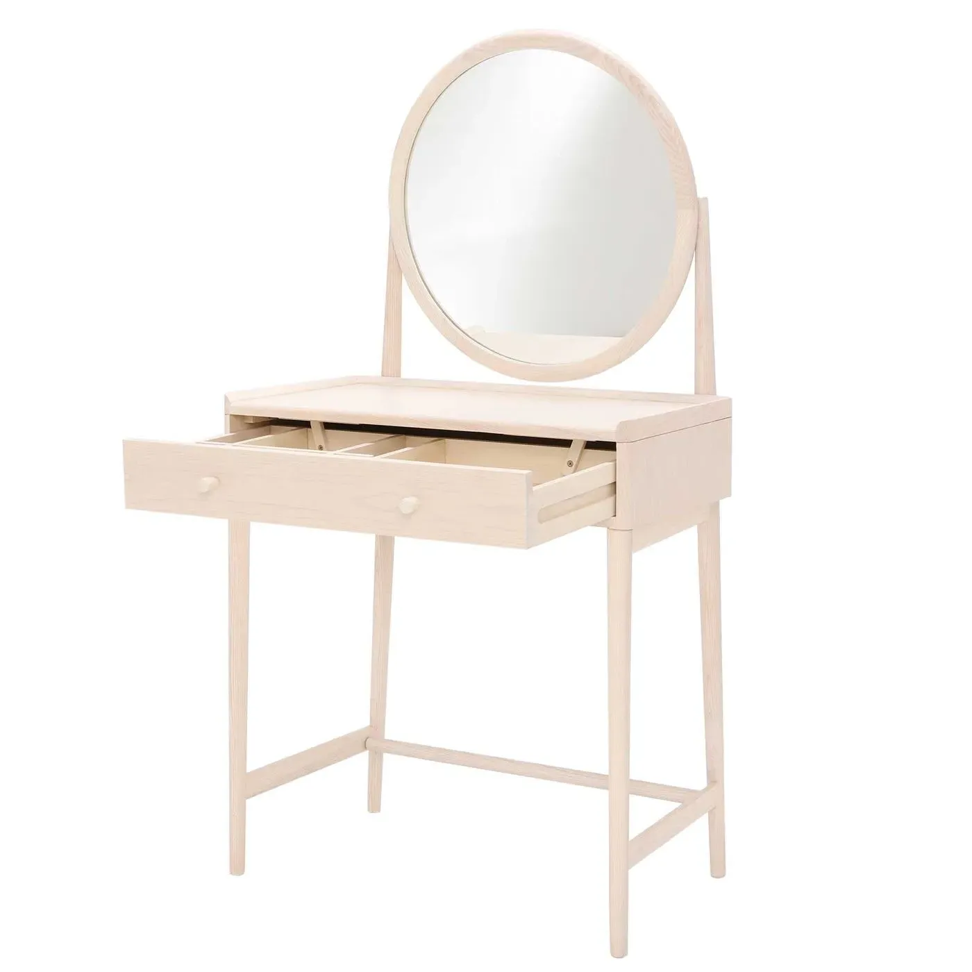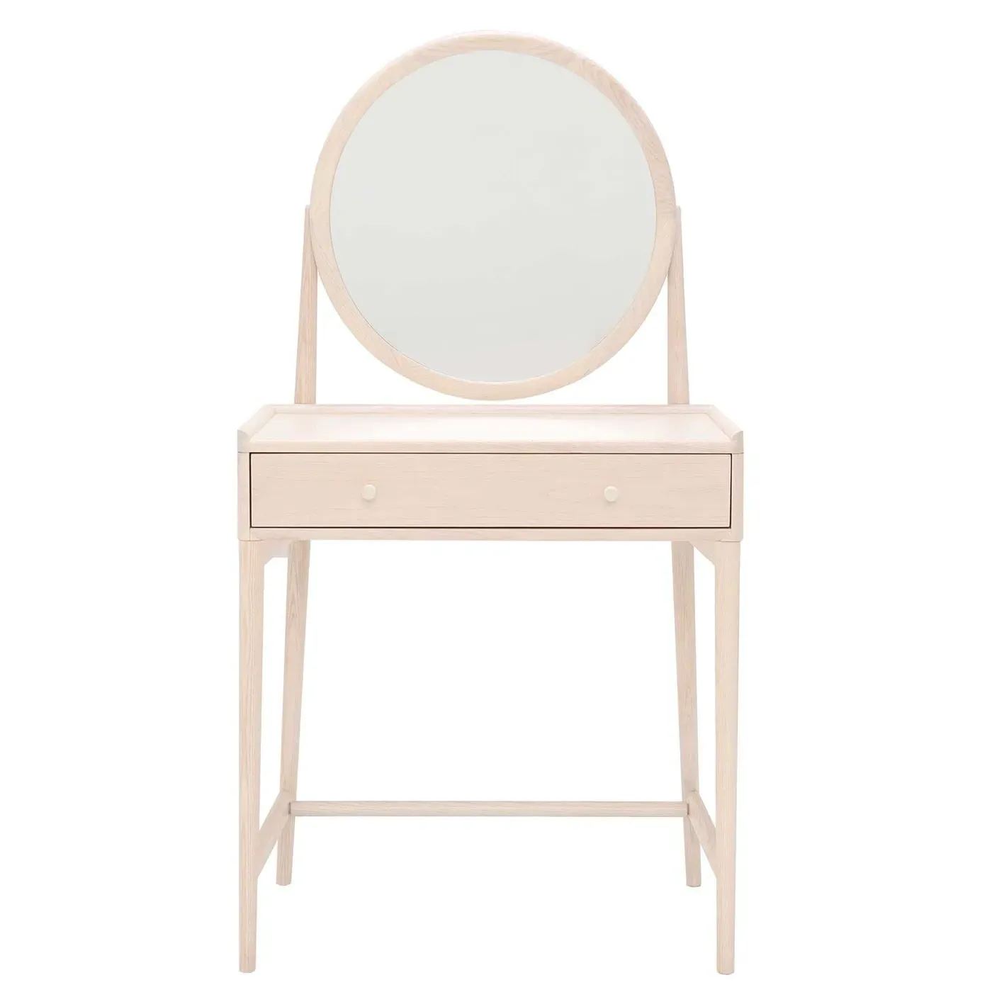 The Ercol Salina Dressing Table Stool features solid ash construction with ash veneers for natural strength and refined finish. Its compact design provides comfortable seating while maintaining the wood's inherent durability. The neutral wood tone coordinates with the matching dressing table, creating a cohesive bedroom ensemble.