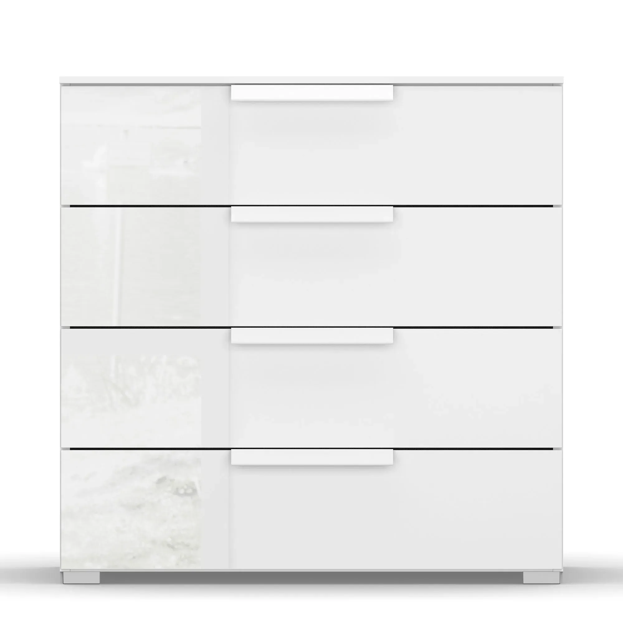 Engineered Wood And Veneer, Coloured Front. Frans 4 Drawer Chest, Grey | Barker & Stonehouse