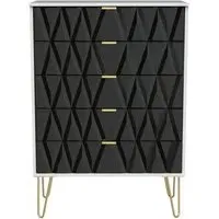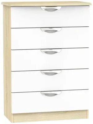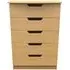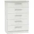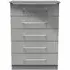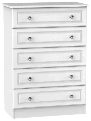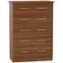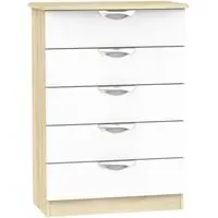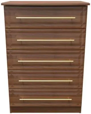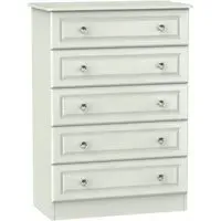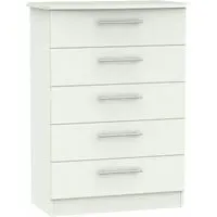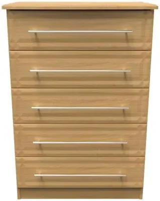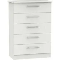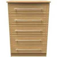 Introducing the Avon Bardolino 5 Drawer Chest by Welcome Furniture, a stylish and functional storage solution for your bedroom. This elegant chest of drawers is part of the Avon Bardolino range, designed to complement a variety of interior styles. Crafted from high-quality particle wood, this piece offers durability and longevity. The beautiful Bardolino finish adds a touch of sophistication to your space, seamlessly blending with existing decor. With its compact dimensions of W 76.5cm x D 41.5cm x H 107.5cm, this chest is perfect for maximizing storage in smaller bedrooms or apartments. The five spacious drawers provide ample room for organizing clothing, accessories, and personal items, helping you maintain a clutter-free environment. Each drawer is designed for smooth operation, ensuring easy access to your belongings. The clean lines and minimalist design of the Avon Bardolino 5 Drawer Chest make it a versatile piece that can adapt to various bedroom styles, from contemporary to traditional. Whether you're looking to revamp your bedroom or simply need additional storage, this chest of drawers is an excellent choice. Invest in the Avon Bardolino 5 Drawer Chest by Welcome Furniture and experience the perfect blend of style, functionality, and quality craftsmanship in your bedroom. However you may find different names used in each store for Avon Bardolino 5 Drawer Chest & can be found under the name as Elton Bardolino 5 Drawer Chest Best furniture shop in Leicester,Leicestershire,East Midlands Selling. Deals. Furniture sale,Chest of Drawers sale Best furniture shop in Leicester,Leicestershire,East Midlands Selling. Deals. Black Friday Furniture Sale, Black Friday Chest of Drawers Sale