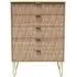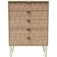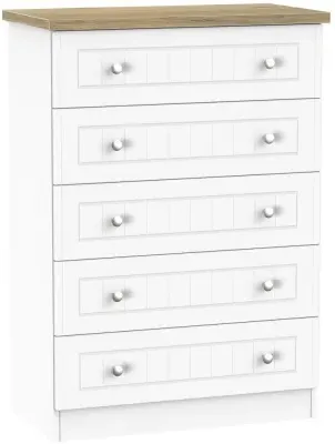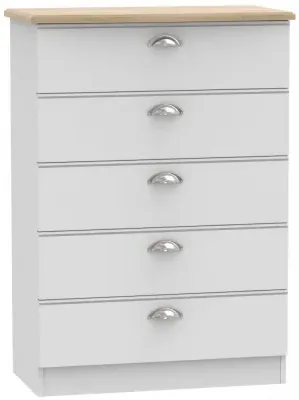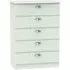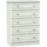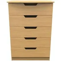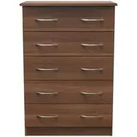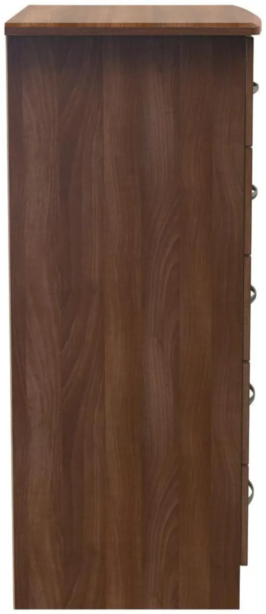 The Avon 5 Drawer Chest offers generous storage with its five spacious drawers, featuring a beautiful Bardolino finish that adds sophistication to any space. Its durable particle wood construction provides long-lasting reliability, while the smooth-operating drawers ensure easy access to stored items. The chest combines practical storage solutions with clean lines that complement various decor styles. W 76.5 x D 41.5 x H 107.5 cm.