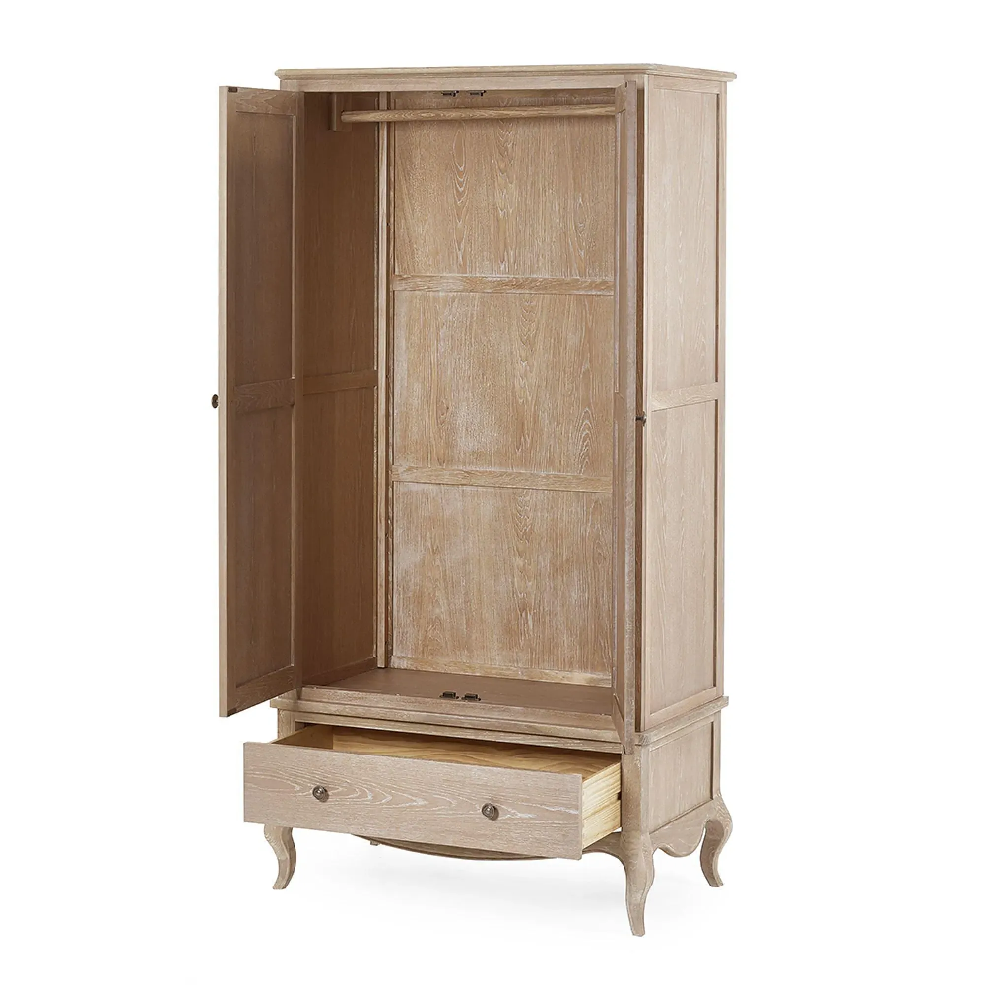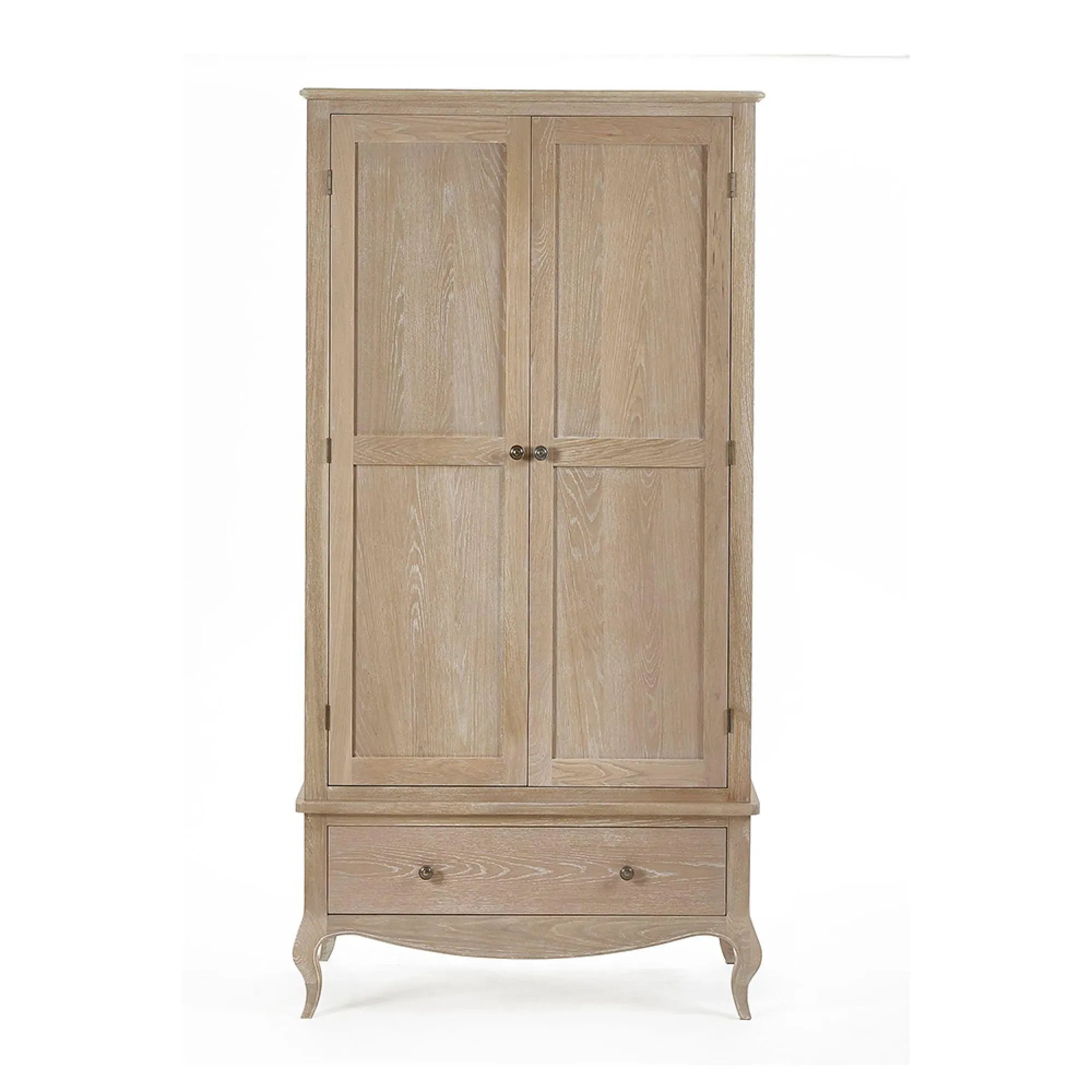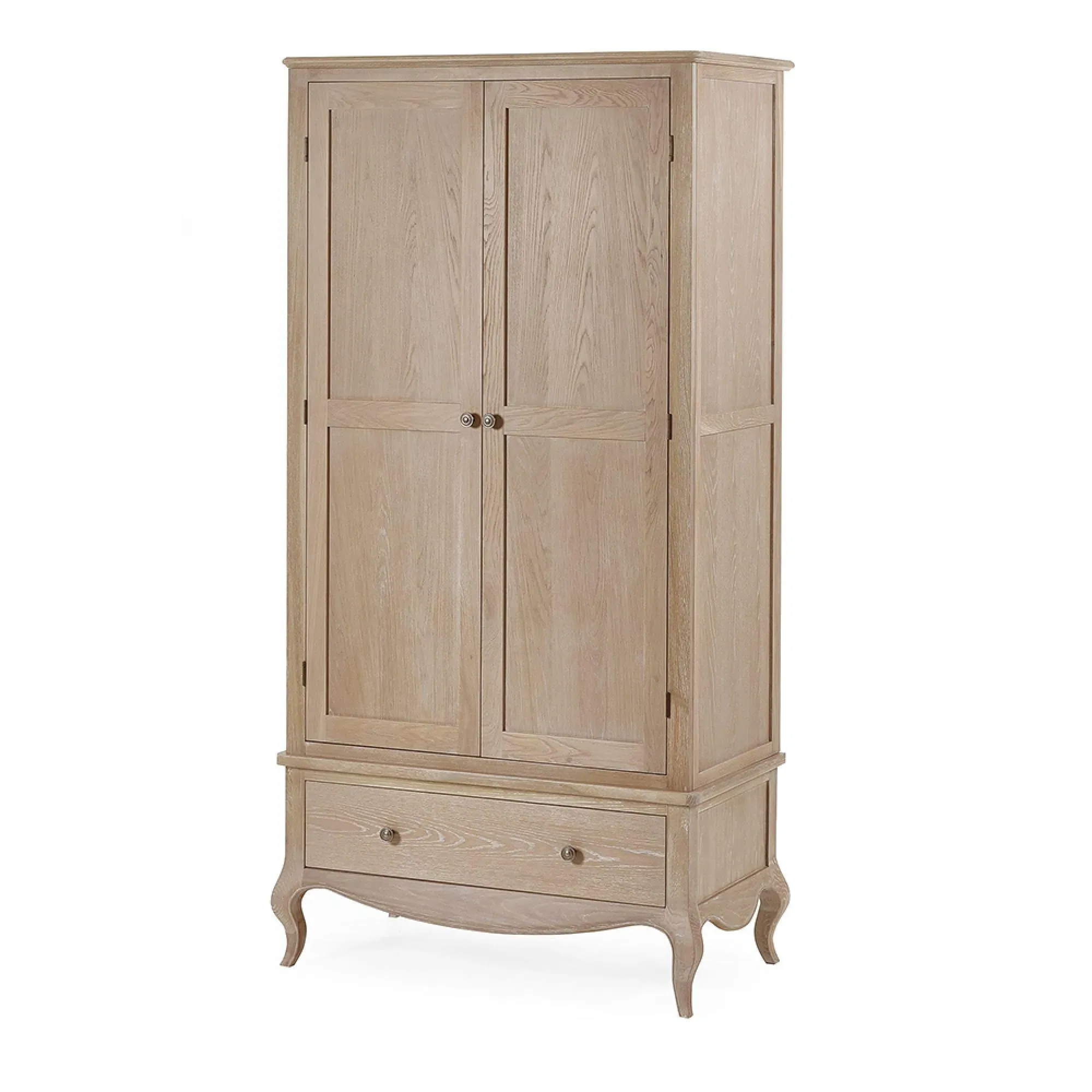 The Camille 2 Drawer Bedside Cabinet combines rustic charm with French styling in solid oak construction. Its two drawers glide smoothly on quality runners, providing organized storage for bedside essentials while maintaining a clutter-free space. The compact design features clean lines and subtle detailing characteristic of French provincial furniture. The rich limed oak finish enhances the natural wood grain, adding warmth and sophistication to any bedroom setting.
