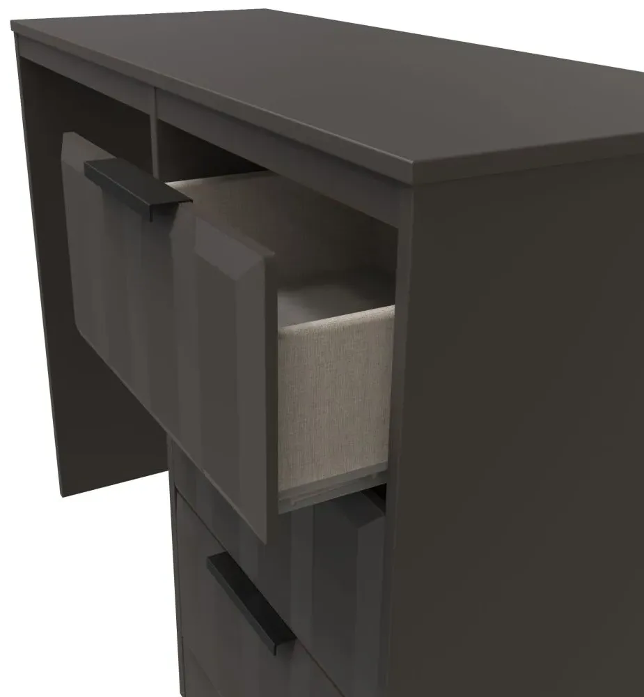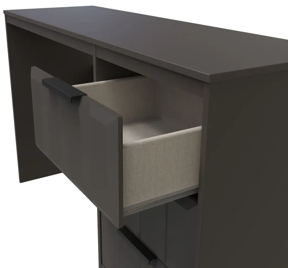 The New York Padded Dressing Stool combines comfort with its cushioned seat, finished in coordinating graphite. Its padded surface provides comfortable seating, while the compact design fits neatly at dressing tables or vanity units. The stool features supportive construction for daily use, and the neutral graphite finish complements various bedroom decor styles.
