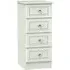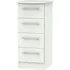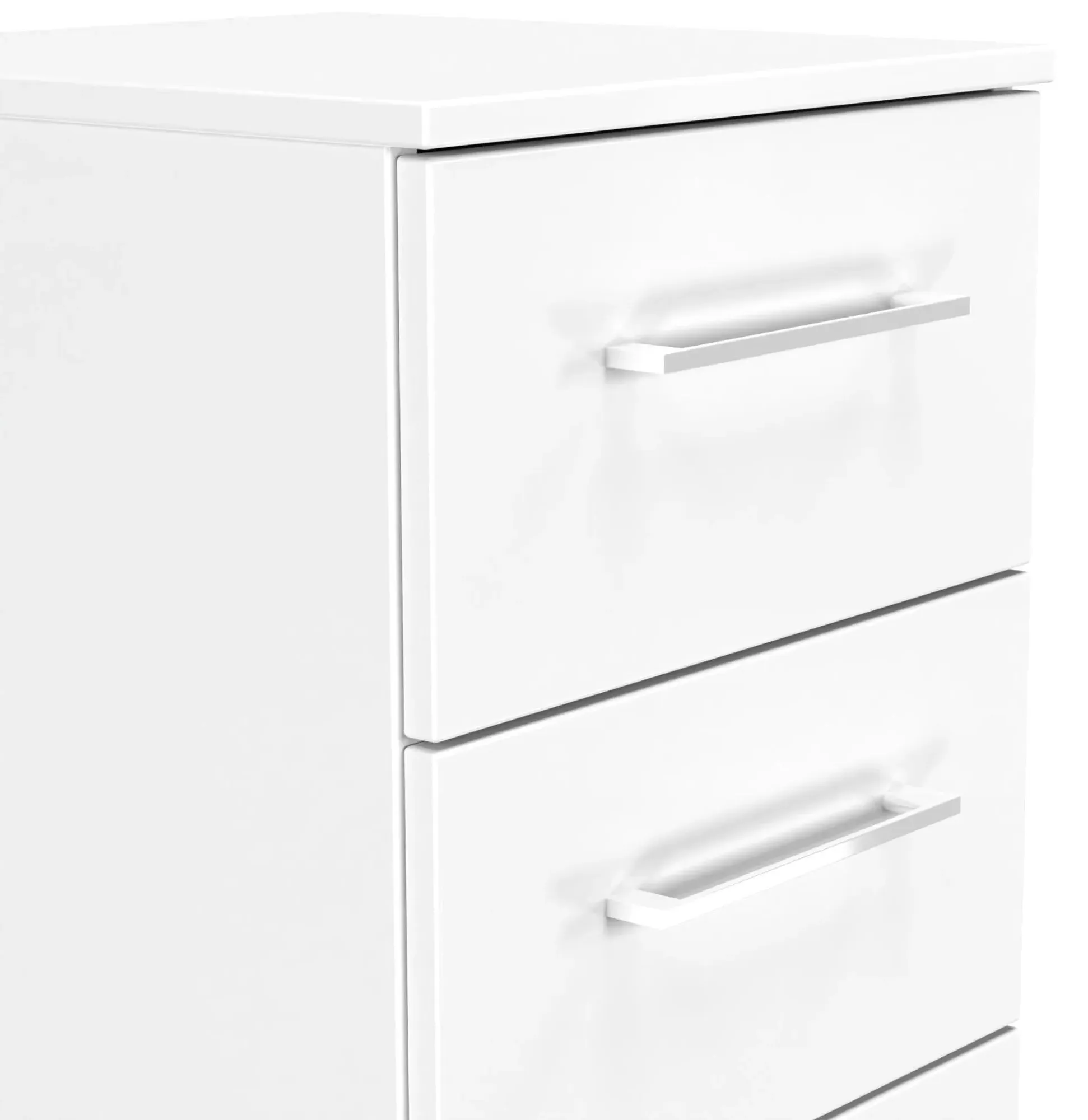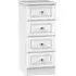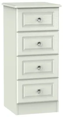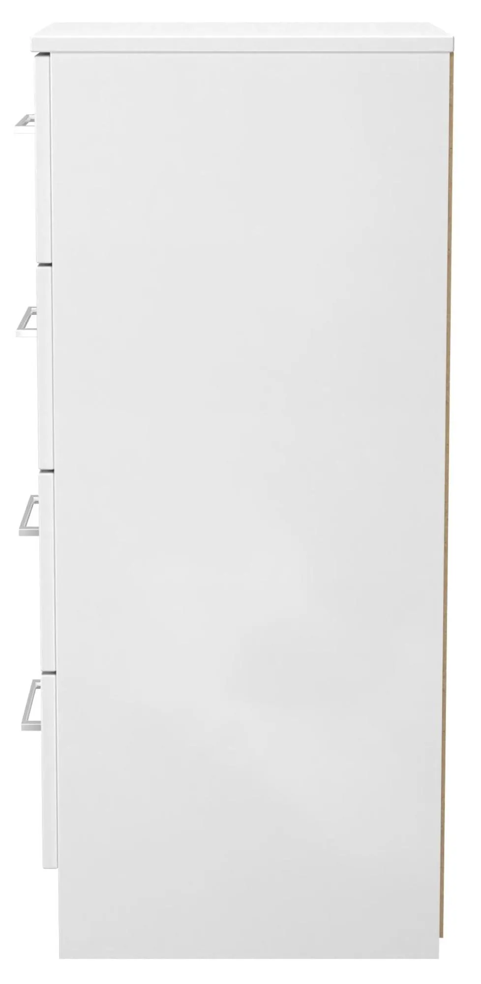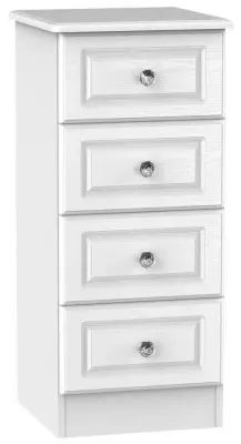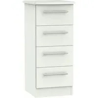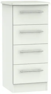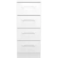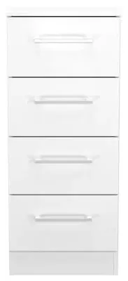 The Plymouth 4 Drawer Narrow Chest offers compact storage with its sleek white gloss finish and particle wood construction. Its four spacious drawers provide organized storage for clothing and personal items, while the smooth gloss surface allows easy cleaning and maintenance. The narrow dimensions suit bedside placement without overwhelming the space, and the sturdy build ensures long-lasting functionality. W37 x D39 x H89 cm