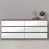Elevate your bedroom with the Furniture in Fashion Nakou High Gloss Chest of 3 Drawers, a stunning combination of modern design and practical storage. Featuring a sleek white high gloss finish with oak accents, this stylish chest effortlessly blends contemporary aesthetics with a touch of natural warmth. Whether placed in a bedroom, hallway, or living space, its clean lines and elegant look make it a perfect fit for any modern interior. Designed with three spacious drawers, the Nakou Chest offers ample storage for clothing, accessories, and other essentials, keeping your space neat and organized. Crafted from high-quality wood, this durable and sturdy piece ensures long-lasting use. Its smooth drawer mechanism provides easy access, making it a functional and stylish addition to your home. Upgrade your storage solutions with the Furniture in Fashion Nakou High Gloss Chest of 3 Drawers, offering style, practicality, and durability in one elegant piece. FEATURES : Material : High Gloss Finish : White Oak High quality laminated board (resistant to damage and scratches, moisture and high temperature) Easy gliding drawer runners Stylish and contemporary Easy self assembly Made from PEFC Certified sustainable wood A modern yet timeless design that enhances any dcor Offers generous storage for clothes, accessories, and more Made from high-quality wood for durability and stability Ensures effortless opening and closing Ideal for bedrooms, hallways, or living areas Perfect as a dresser, storage unit, or decorative accent piece Blends seamlessly with various interior styles Comes with clear instructions for a quick and hassle-free setup Available at an affordable price Images shown are for illustration purpose only DIMENSIONS : Height : 70. 1cm Width : 77cm Depth : 50cm