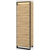 Qesso Wooden Bedside Table in Artisan Oak with LED, a stylish and practical addition from Furniture in Fashion. This bedside table beautifully showcases the natural charm of artisan oak, featuring an exquisite wood grain finish. The integrated LED lighting adds a touch of sophistication, creating a cozy and inviting ambiance in your bedroom. The bedside table not only offers a convenient surface for your nighttime essentials but also provides a drawer and open storage space for keeping your essentials organized. Whether it's placed in your bedroom or as an accent piece in another room, the Qesso Wooden Bedside Table is a versatile and chic addition that adds both style and functionality to your living space. Elevate your home decor with this beautiful and practical piece from Furniture in Fashion, where form and function harmonize seamlessly. Please Note : Any faults or damaged parts must be reported before proceed with the assembly FEATURES : Material : 16mm High-Quality Laminated Board Frame Colour: Oak Artisan with Black Decor Two Drawers ABS Edging LED Lighting Included Matching Furniture Available Made from 16mm high-quality laminated board Assembly Required Available at an affordable price Images shown are for illustration purpose only DIMENSIONS : Height : 48cm Width : 55cm Depth : 41cm