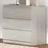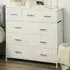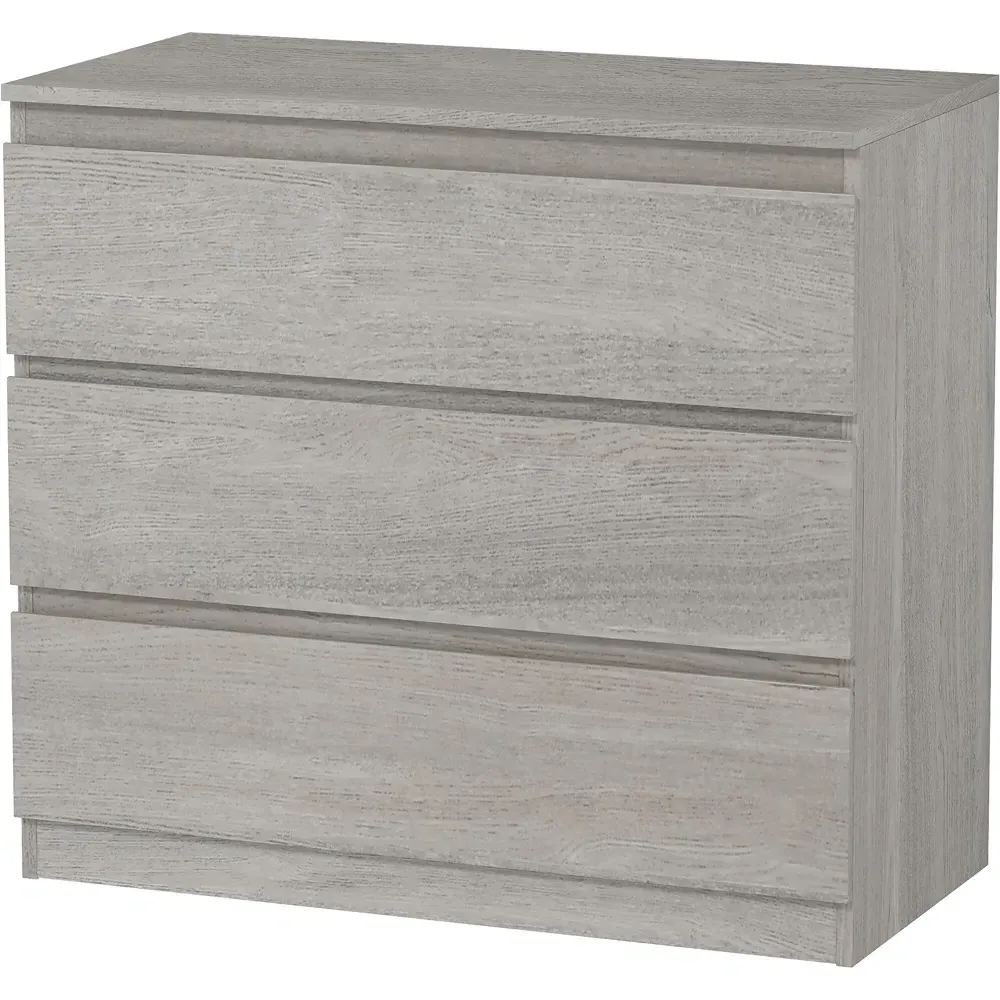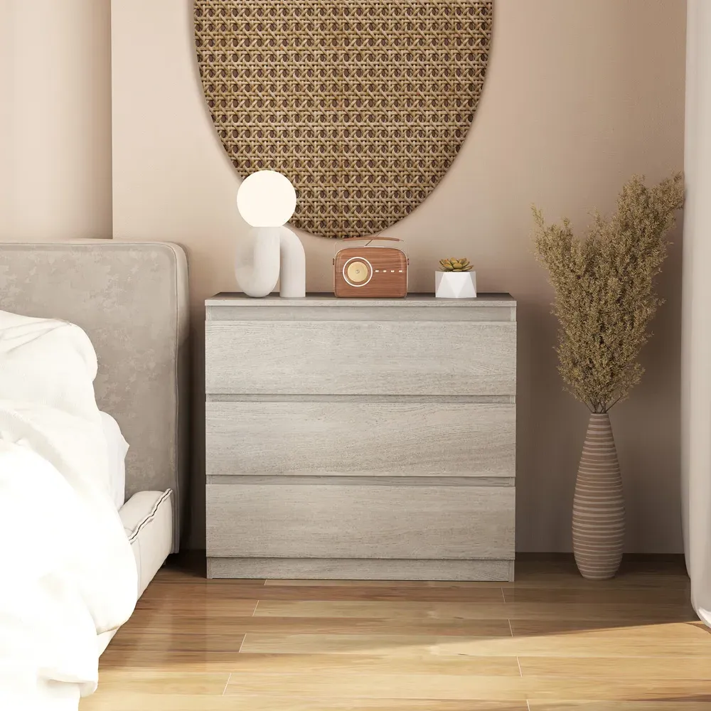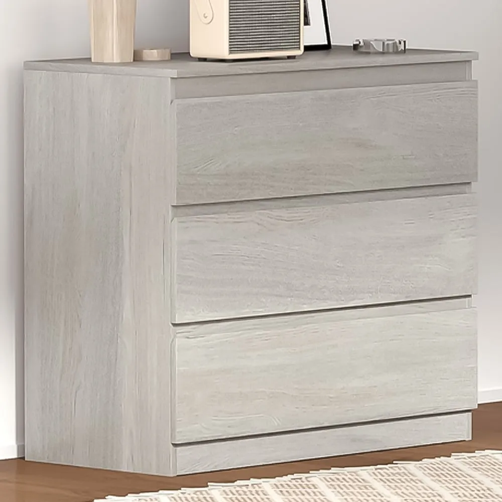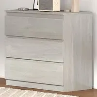 The chest of drawers combines storage and display with its four drawers and top shelf, featuring a wood-effect finish and steel frame construction. Its industrial design offers versatility, while the adjustable feet provide stability on various surfaces. The top shelf accommodates decorative items, and the compact footprint suits smaller spaces efficiently.