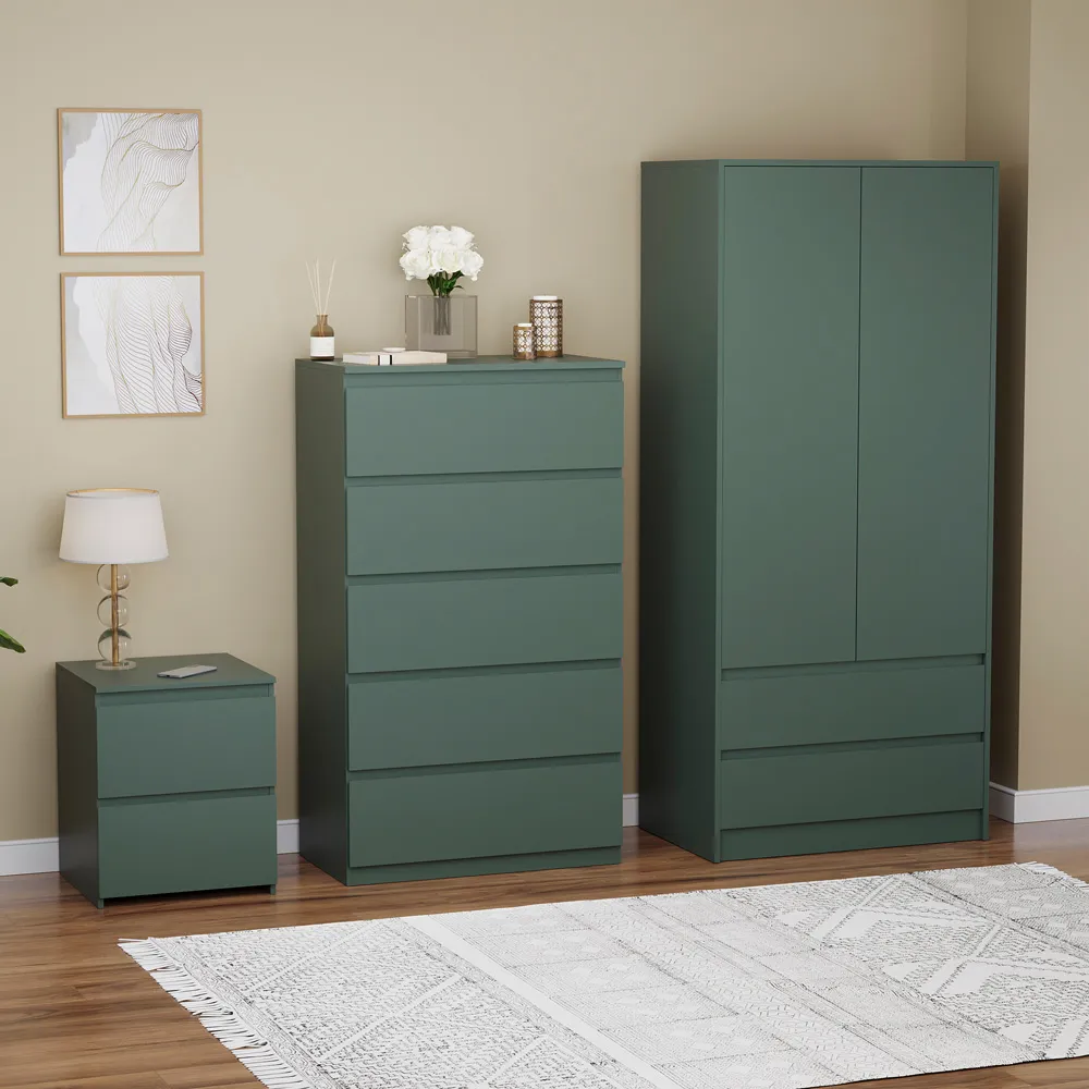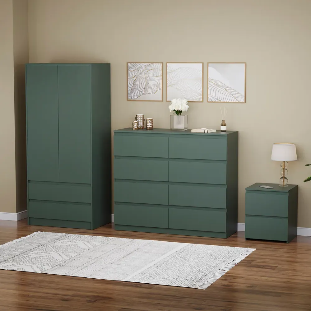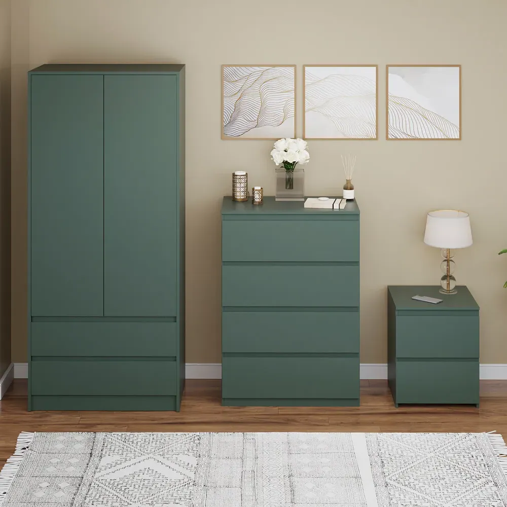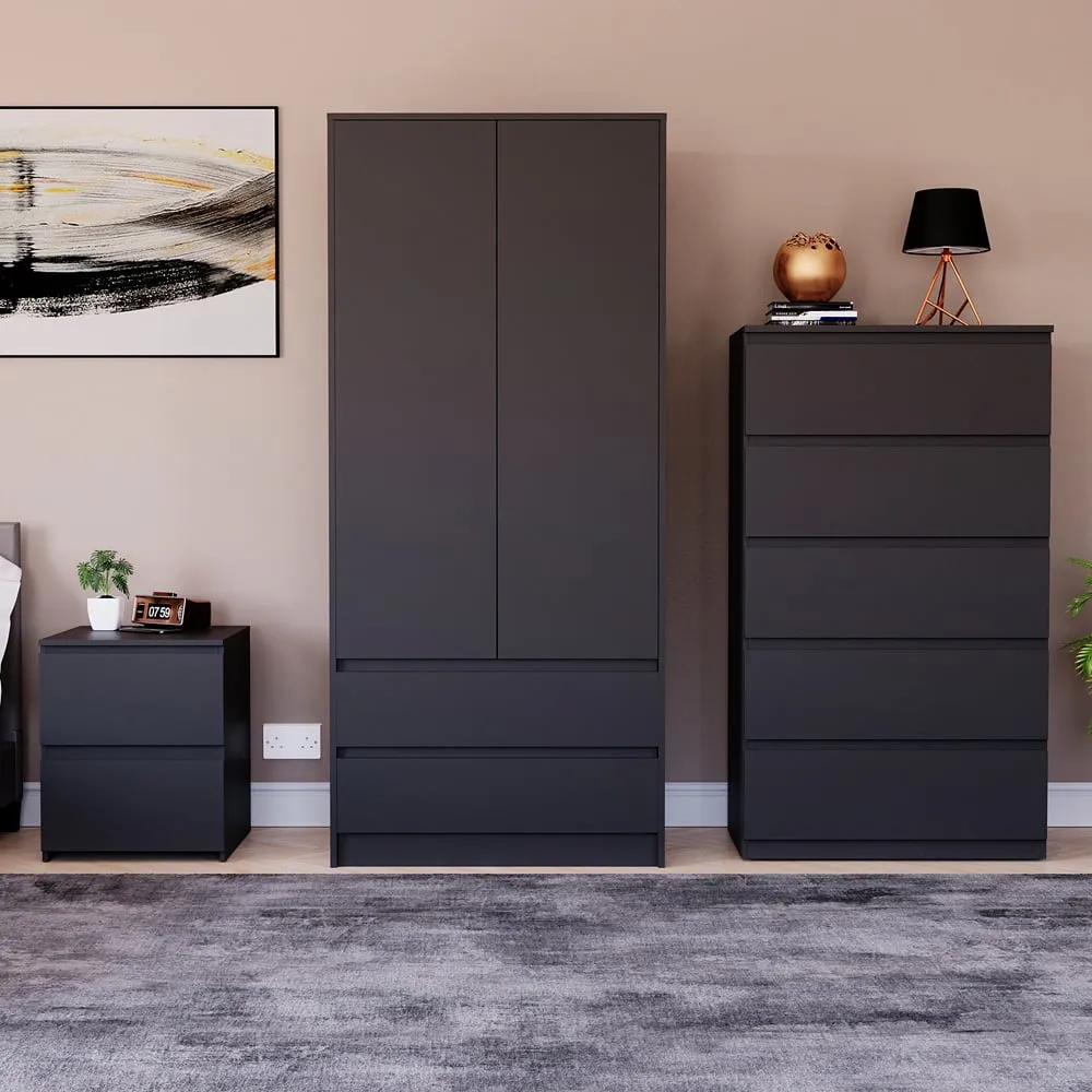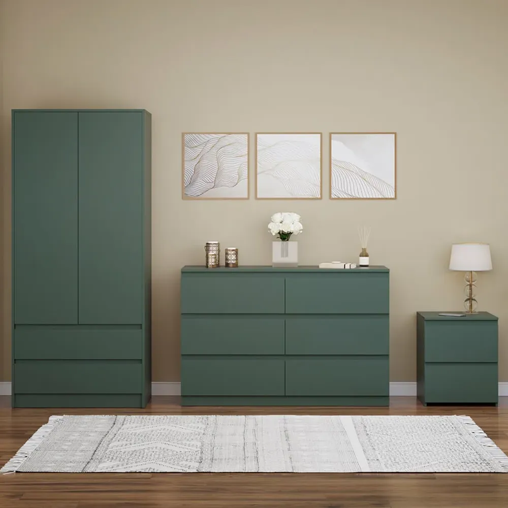 Transform your bedroom into a contemporary sanctuary with the Modern Denver Bedroom Furniture Set. Crafted with clean lines, premium finishes, and smart storage solutions, this collection is designed for both elegance and everyday living. The set includes a chest of three drawers, a wardrobe and a bedside table. Each piece effortlessly balances form and function, creating a cohesive look that keeps your space organised, modern, and inviting. Whether you’re updating a master suite or styling a guest room, the Modern Denver set brings timeless style and comfort to your home. Dimensions: Bedside table: H48 x W39.5 x D: 39.5cm, chest of drawers: H77.5 x W70 x D40cm and wardrobe: H170 x W76 x D53cm.