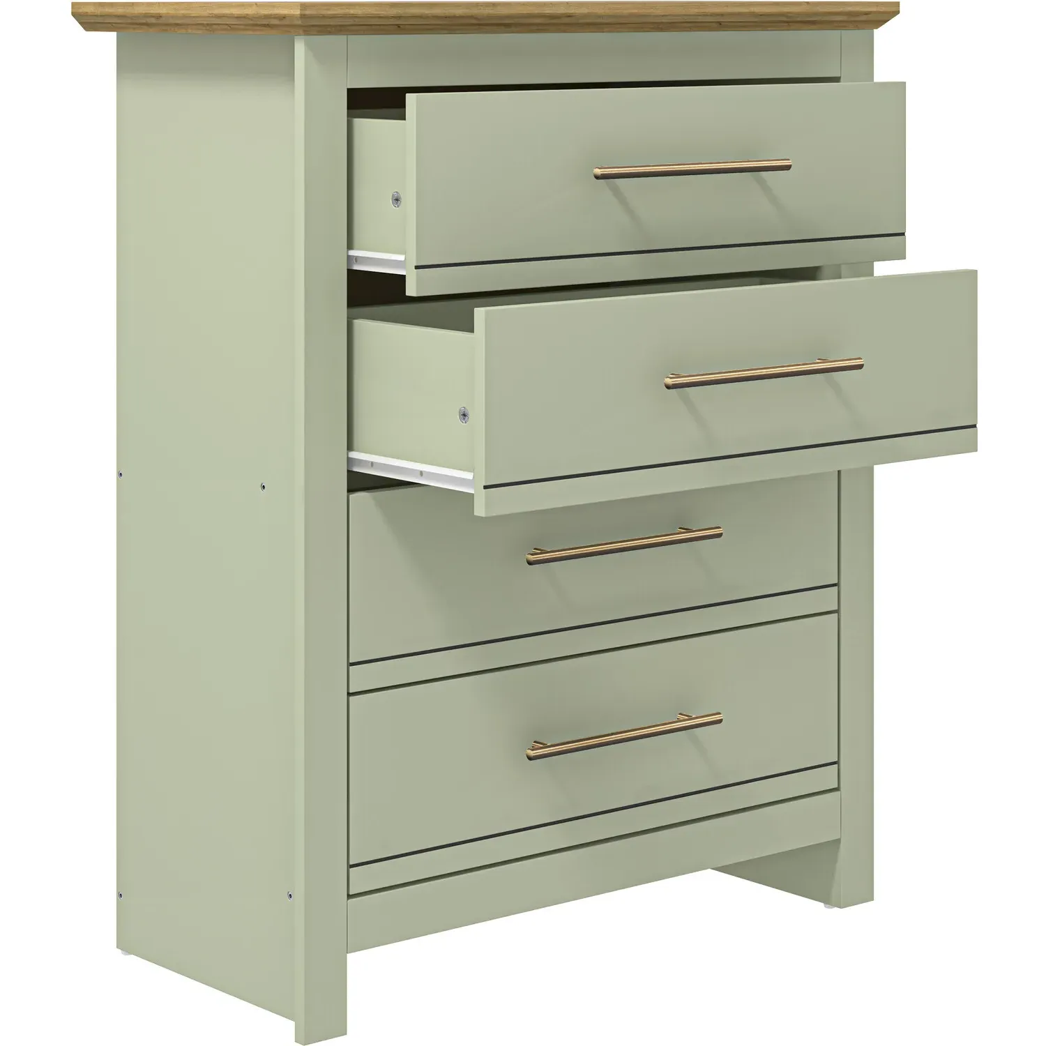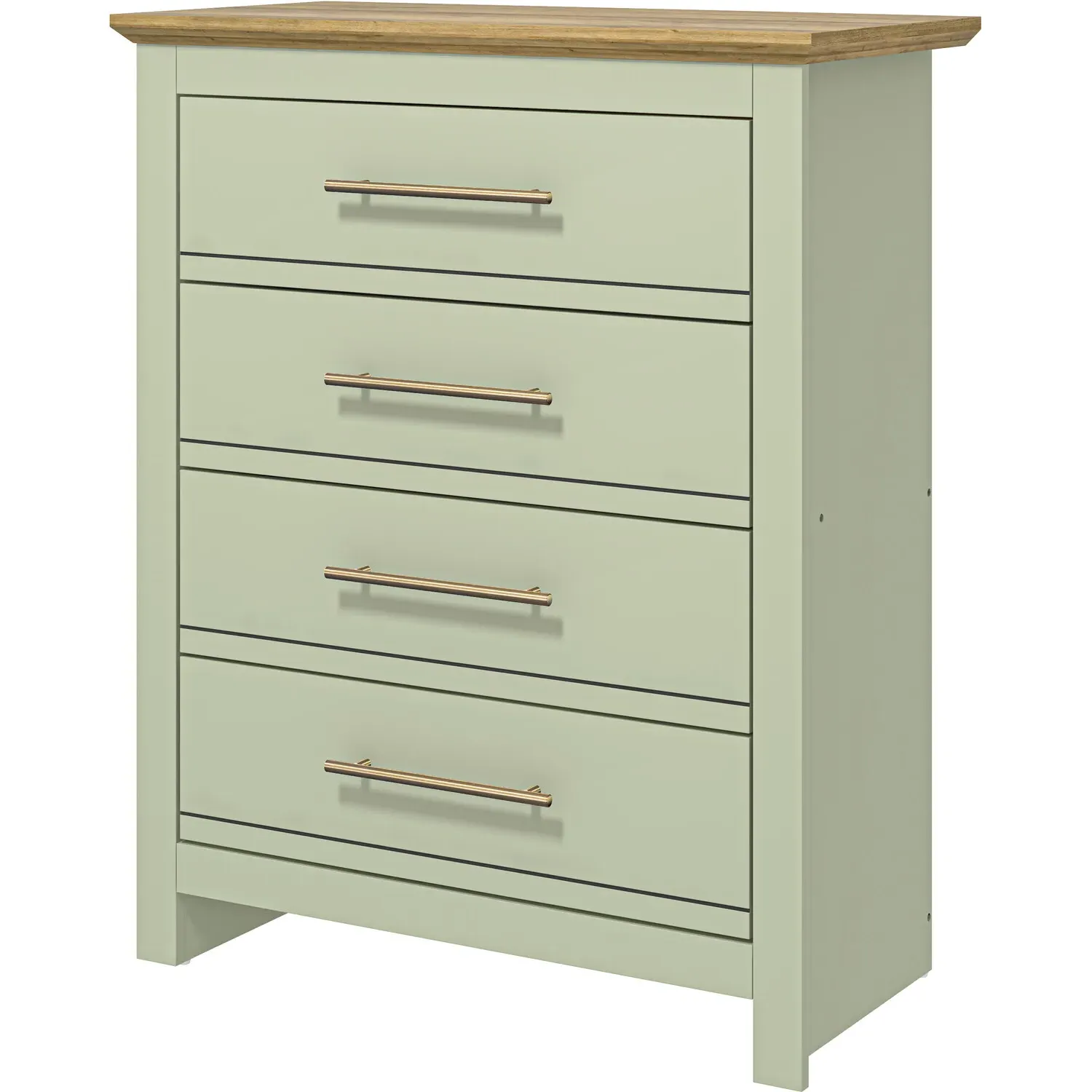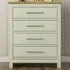 The Boston chest of drawers combines various wood types with a luxurious dark lacquer coating, creating a rich finish that highlights the natural grain. Its four equal-sized drawers feature real metal handles that complement the overall design, while the solid wood construction with wood inserts ensures lasting durability. The spacious top surface accommodates decorative items or a matching mirror, and the traditional colonial styling with drop pull handles adds timeless character to any space.