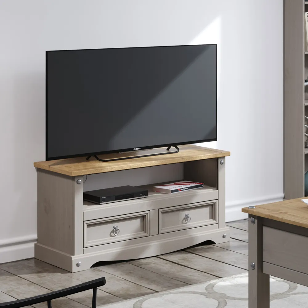 Get effortless elegance in compact form with this Corona Grey Washed Wax Nest of Tables Set of 3. Finished in grey-washed wax with antique wax tops and gunmetal grey metal hardware, these tables are a stylish and practical addition to your home. They can be used individually or as a set and packed away when not in use, perfect when you have visitors at your place for drinks or snacks.