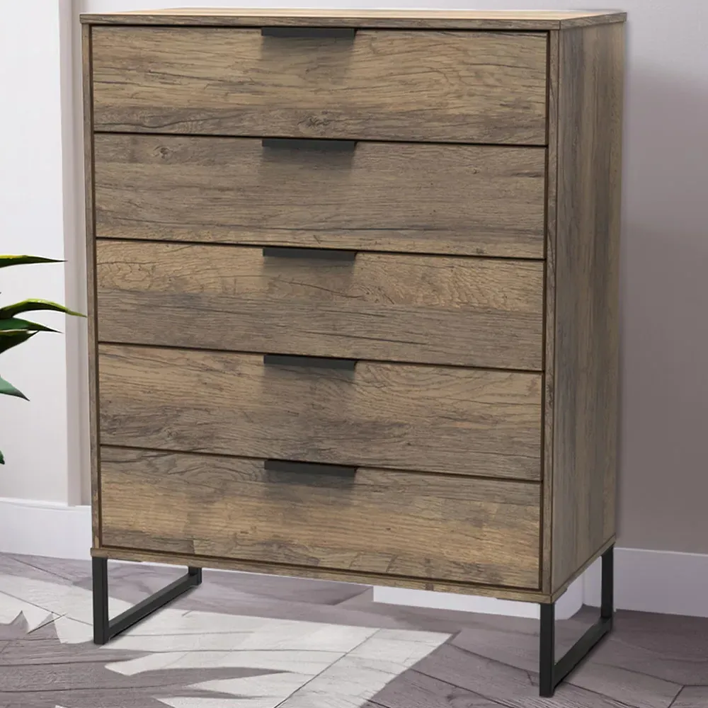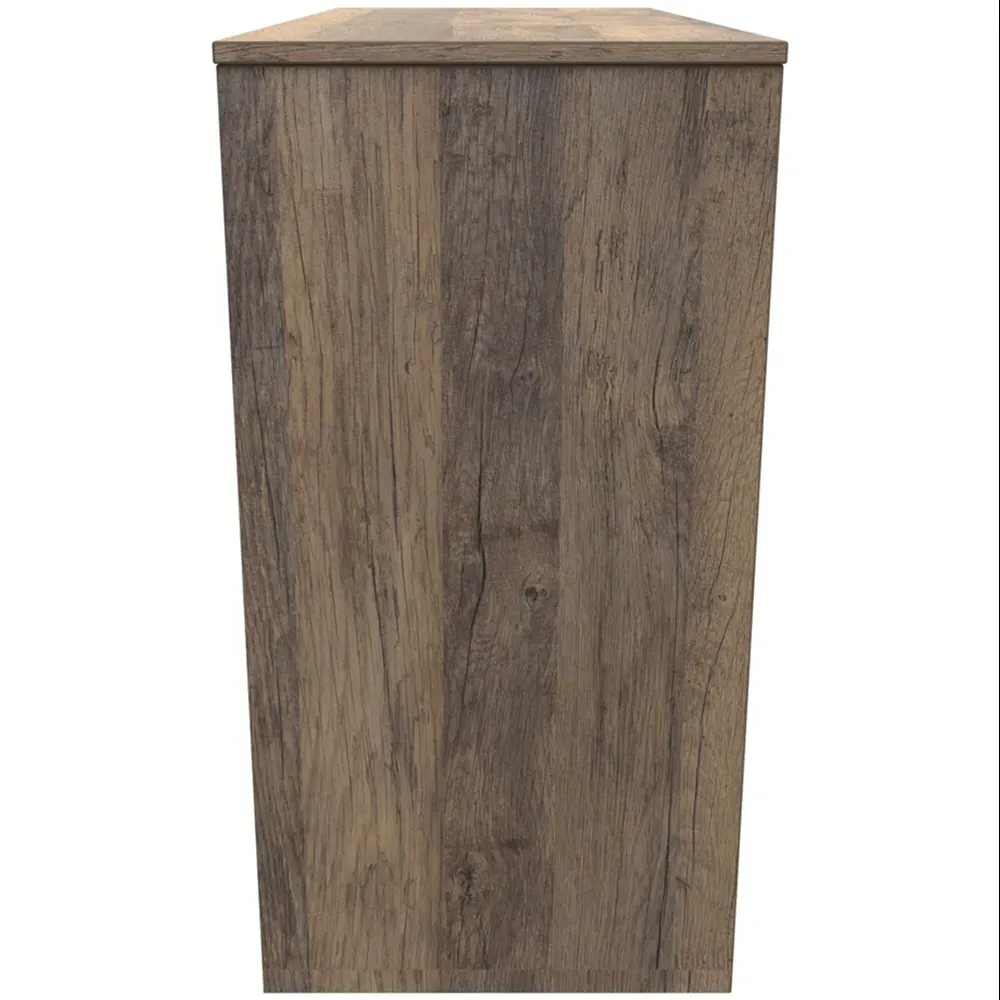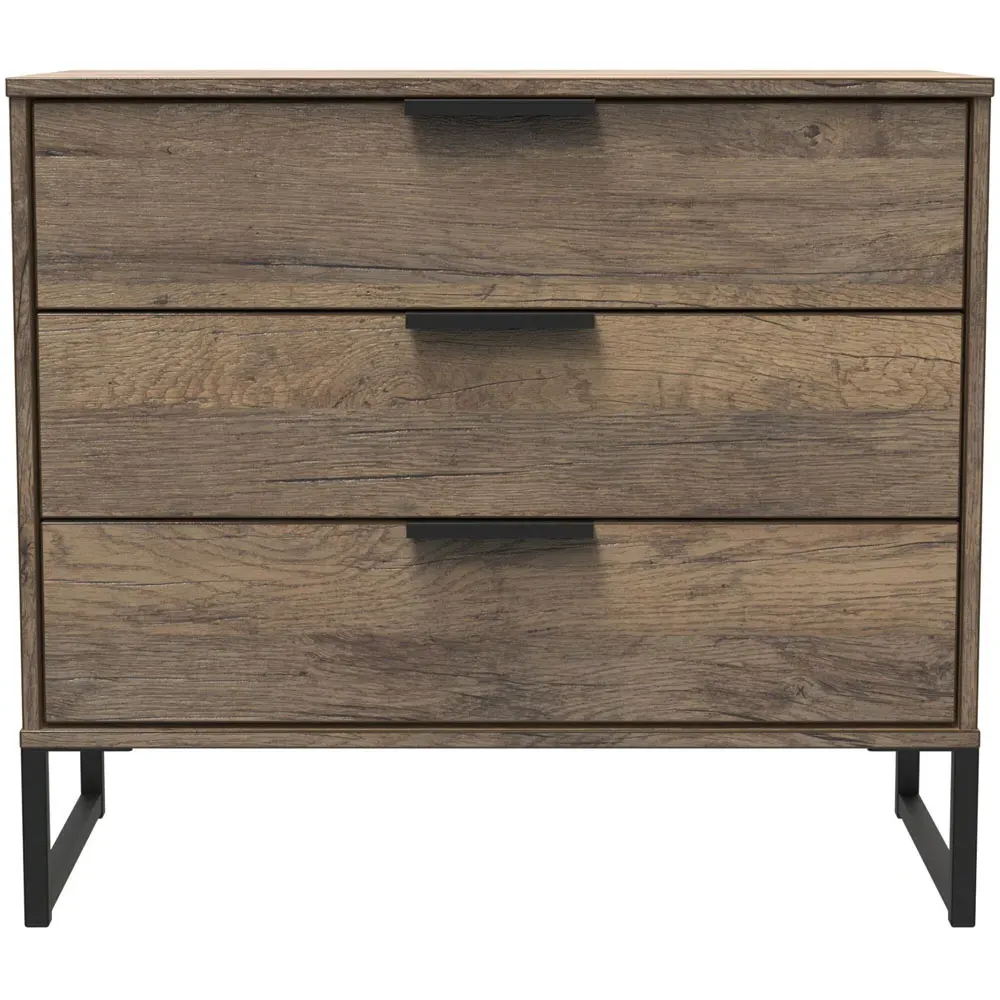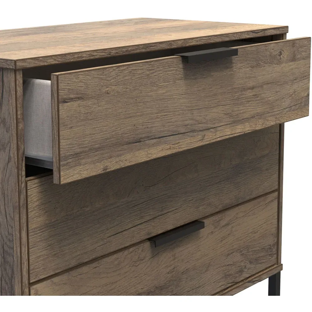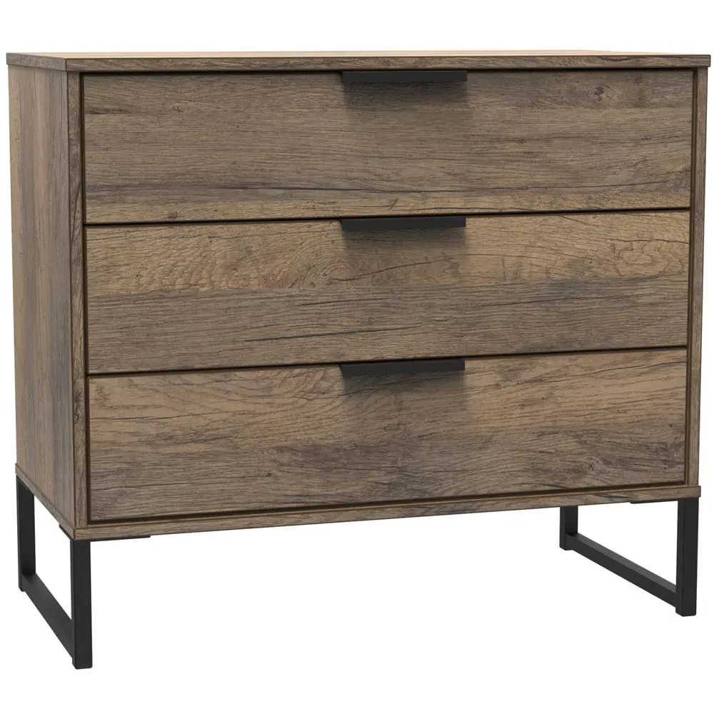 Make a practical and elegant addition to your room with the Crowndale Hong Kong two Drawer Vintage Oak Bedside Cabinet. It is designed with line effect drawer linings and smooth metal runners, ensuring easy and convenient use. This cabinet is perfect for any bedside or can be used as a standalone storage unit. It features pull handles on all doors and drawers, along with sleek black sleigh metal legs. The drawers are equipped with long-lasting metal drawer runners and have a linen effect interior. The cabinet comes fully assembled, although the legs may be temporarily removed to ensure safe transit. This bedside cabinet is ready assembled. Its stylish metal sleigh legs add a touch of sophistication to any room.