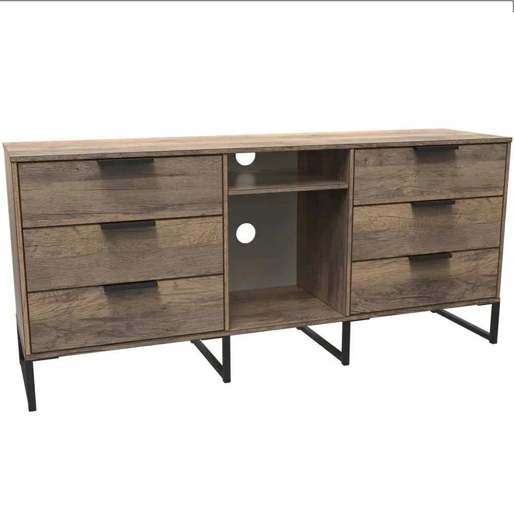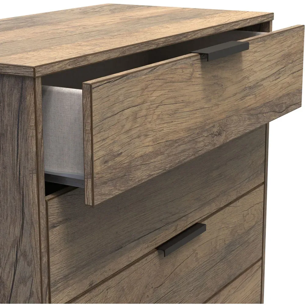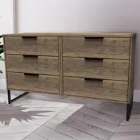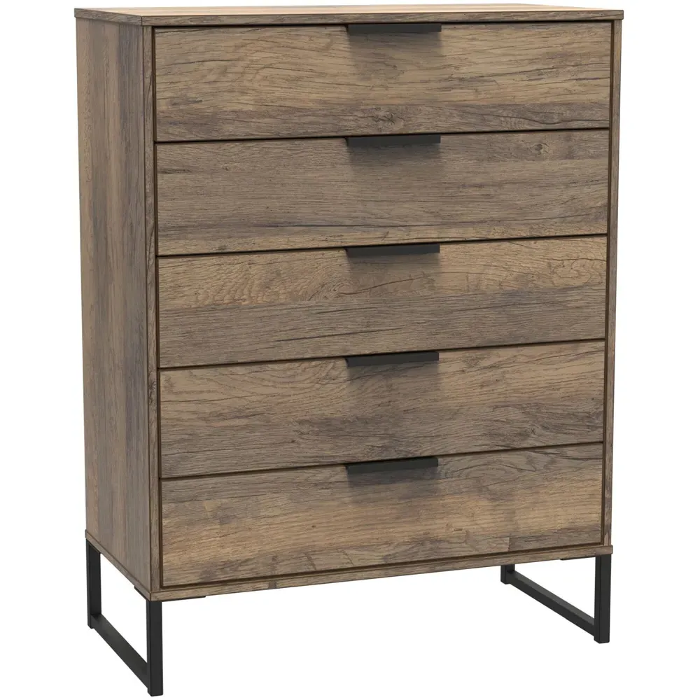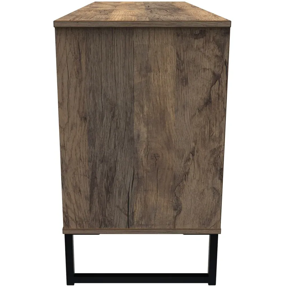 Make a practical and elegant addition to your room with the Crowndale Hong Kong two Drawer Vintage Oak Bedside Cabinet. It is designed with line effect drawer linings and smooth metal runners, ensuring easy and convenient use. This cabinet is perfect for any bedside or can be used as a standalone storage unit. It features pull handles on all doors and drawers, along with sleek black sleigh metal legs. The drawers are equipped with long-lasting metal drawer runners and have a linen effect interior. The cabinet comes fully assembled, although the legs may be temporarily removed to ensure safe transit. This bedside cabinet is ready assembled. Its stylish metal sleigh legs add a touch of sophistication to any room.