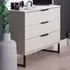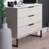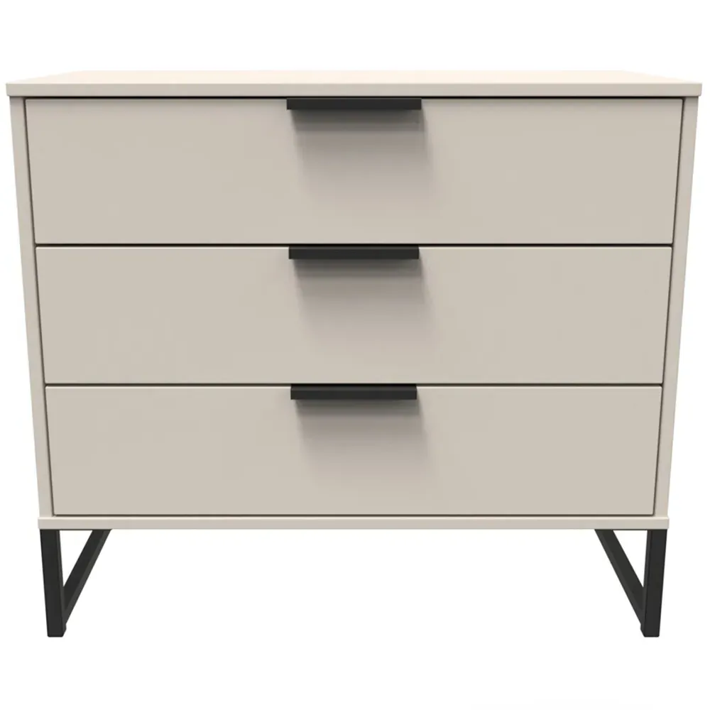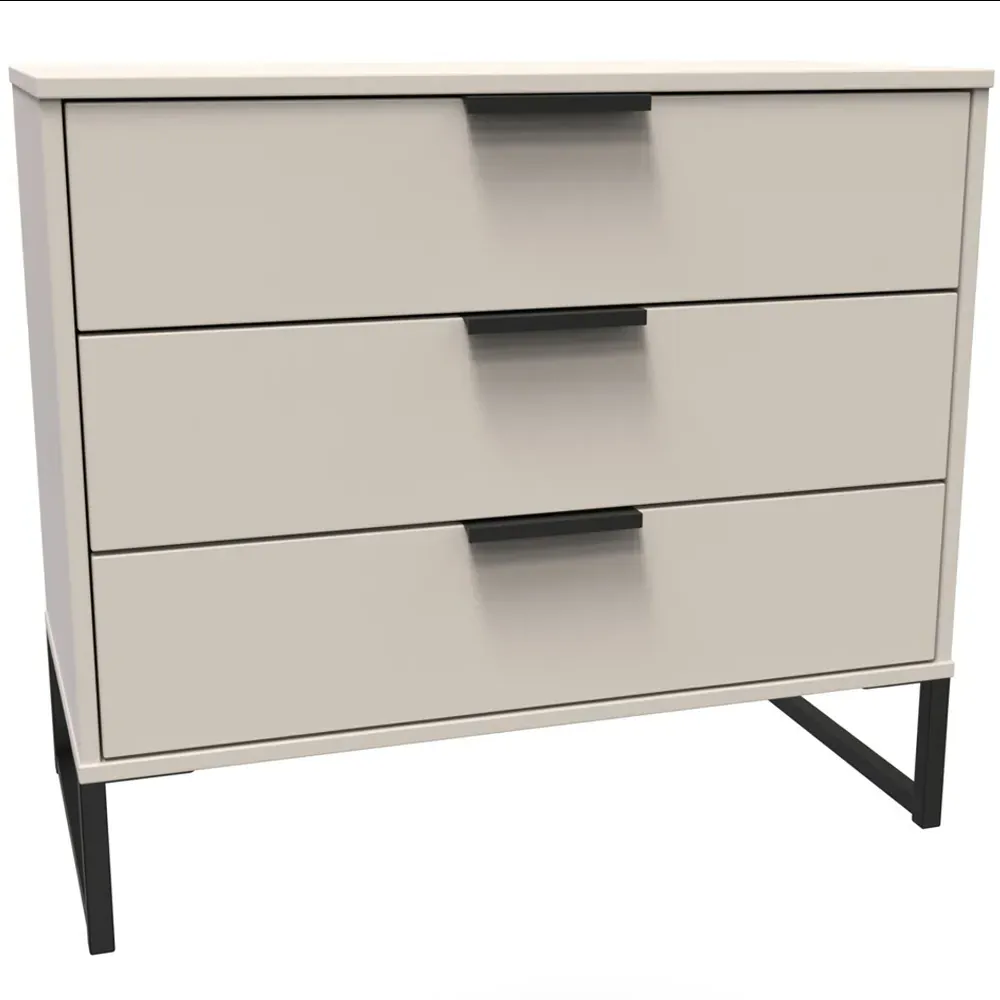 The Hong Kong bedside table provides convenient storage with its two drawers, featuring line effect drawer linings and smooth metal runners for easy access. Its linen-effect interior delivers a quality finish, while the black sleigh metal legs add sophistication. The pull handles ensure effortless operation, and the durable metal runners provide reliable performance.
