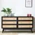 The Venice Bedside Table combines solid mango wood construction with natural rattan front panels for lasting durability. Its two drawers provide convenient storage space for essentials, while the tapered hardwood feet add stability and visual appeal. The compact design suits various interior styles with its subtle finish and functional layout.