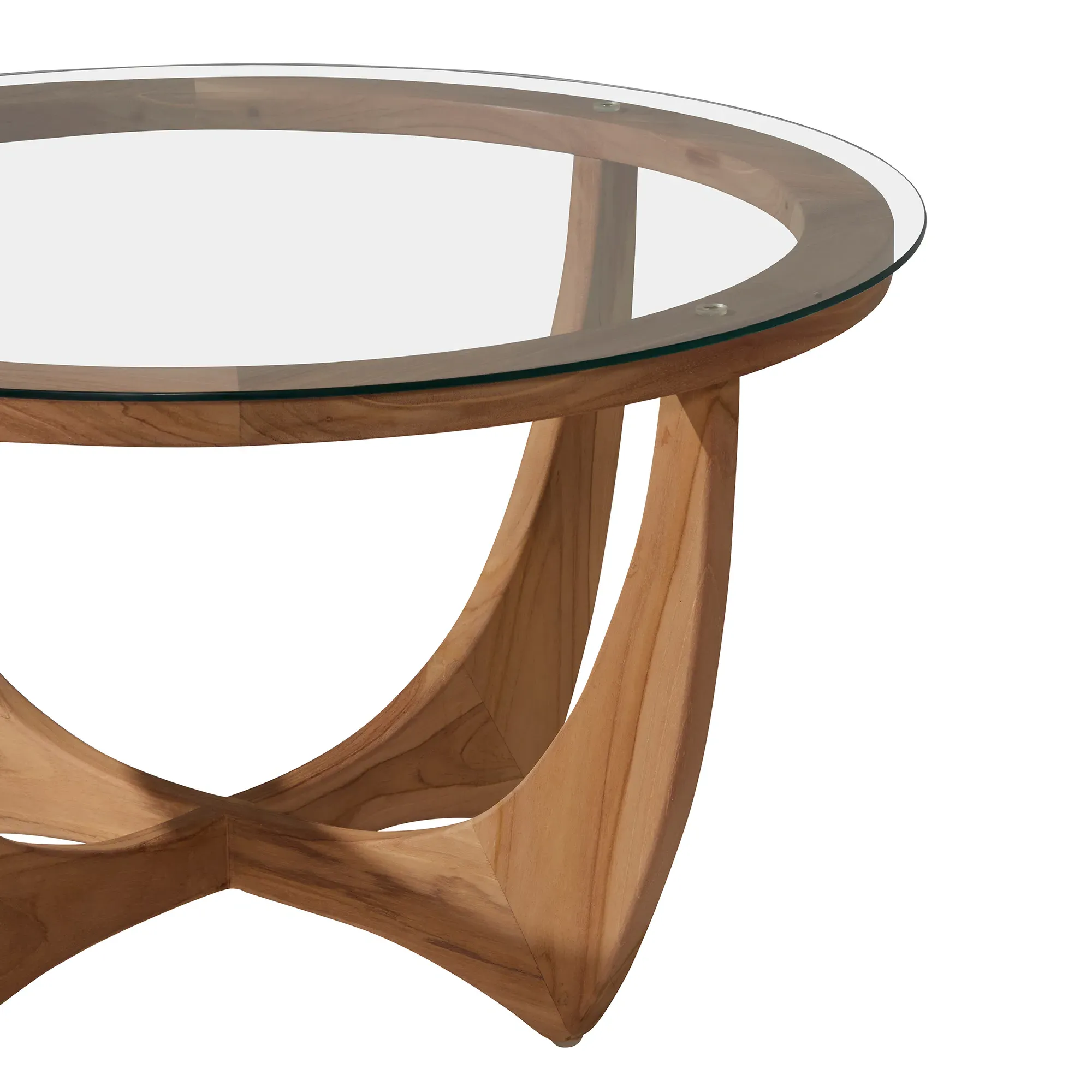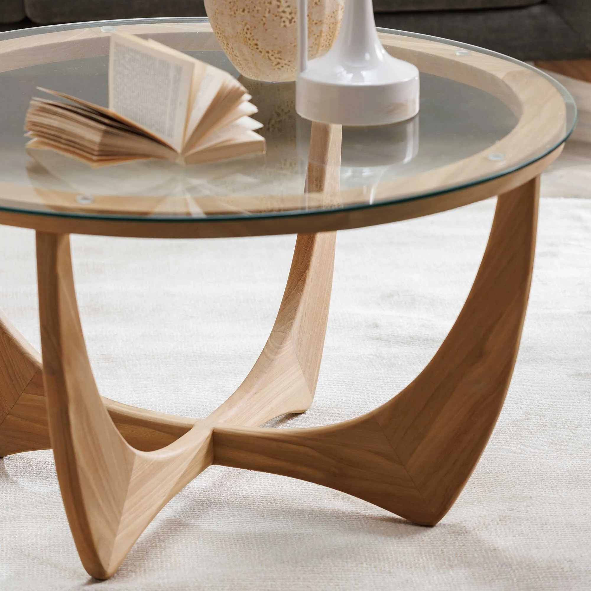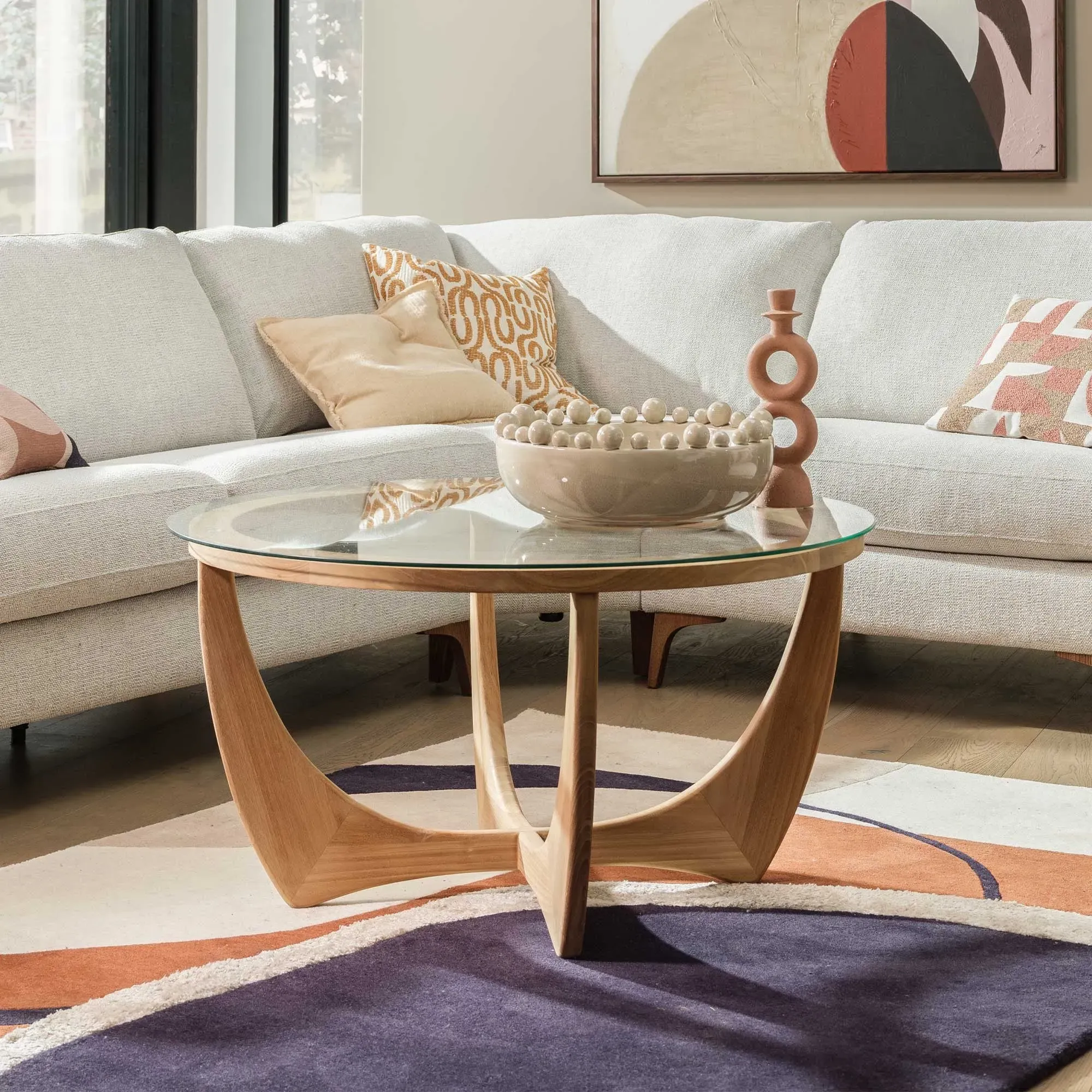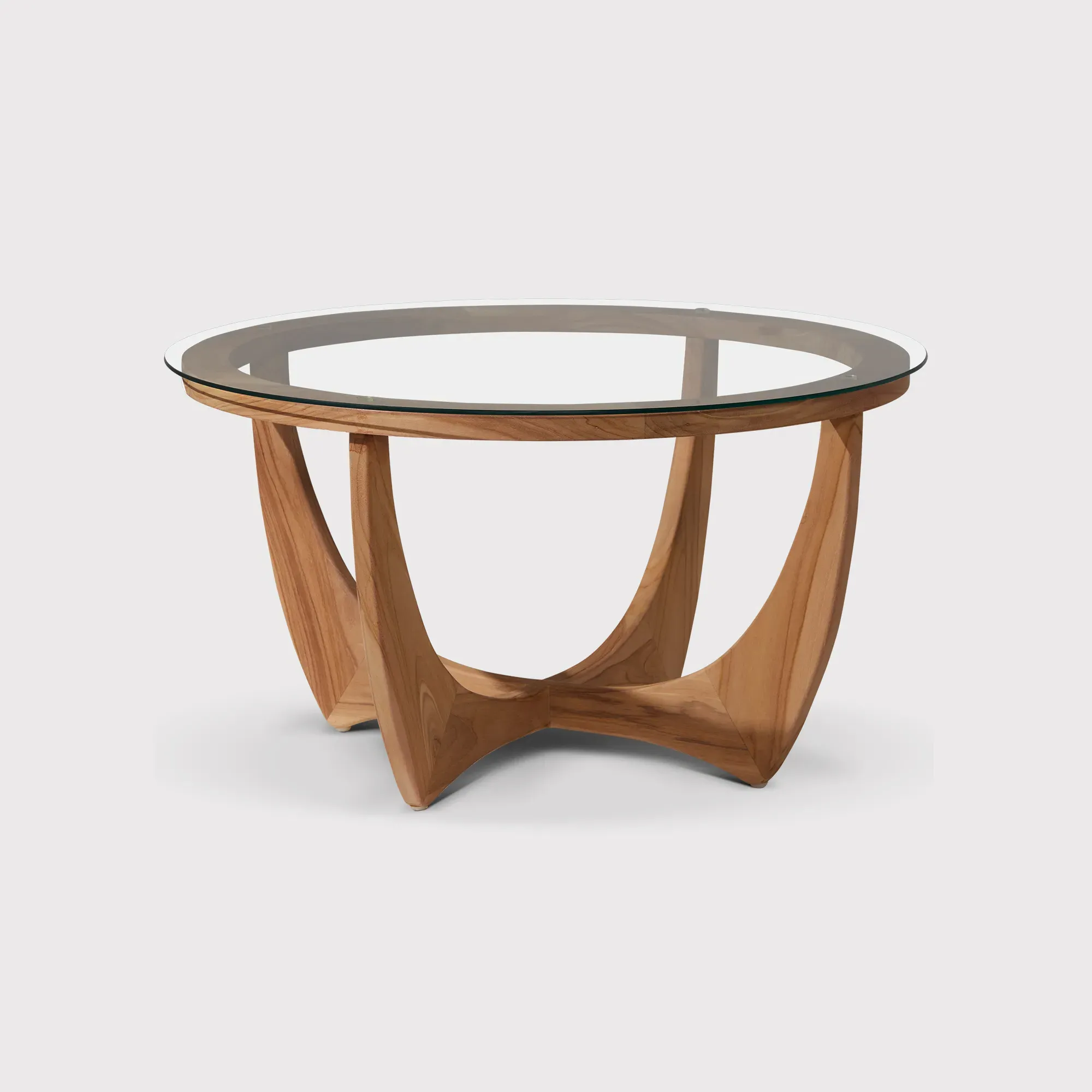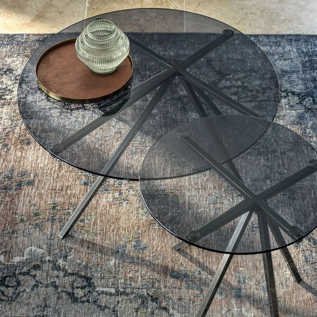 The Medici Coffee Table combines glass construction with warm-toned wood and mild steel elements. Its round surface provides ample entertaining space, while the harmonious blend of materials ensures lasting durability. The green glass top adds a distinctive touch to any living space. W45 x D45 x H47 cm