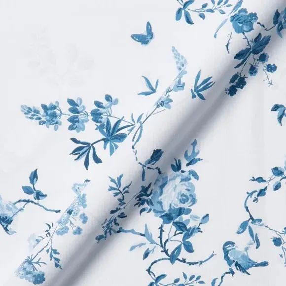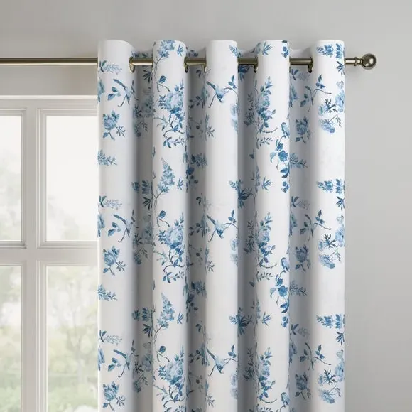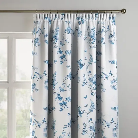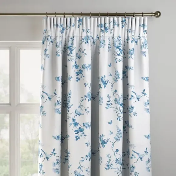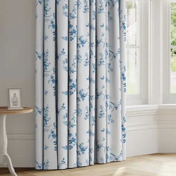The curtains feature an elegant birds and roses pattern that combines classic and contemporary design elements. With custom sizing available, these curtains provide a tailored fit for your windows while the blue colorway adds visual interest. The made-to-measure service ensures precise dimensions, and fabric joins are added for widths over 124cm to achieve the required coverage.