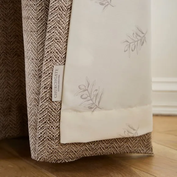 * 1 pair - includes 2x curtain panels* Timeless herringbone design* Weighted corners to ensure a beautiful hang* Polyester lining that improves privacy* Lining options: blackout or lined* Brushed steel eyelet header Designed with a timeless herringbone textured fabric, our Churchgate Swithland curtains would suit a wide range of decor styles. Fully lined to improve insulation and provide added privacy, these curtains are great for use in any room, whilst the modern brushed steel eyelet header will produce a gorgeous undulating drape and allow for smooth movement across your curtain pole. Weighted corners ensure a wonderful hang. Available in a selection of widths and drops to suit your requirements. The size of the curtains shown is the size of 1 panel, you will receive 2 panels of this size. Choose the width that is closest to your pole length for full look. This collection is verified by OEKO-TEX and independently tested for harmful substances as well as manufactured using sustainable processes under socially responsible working conditions.