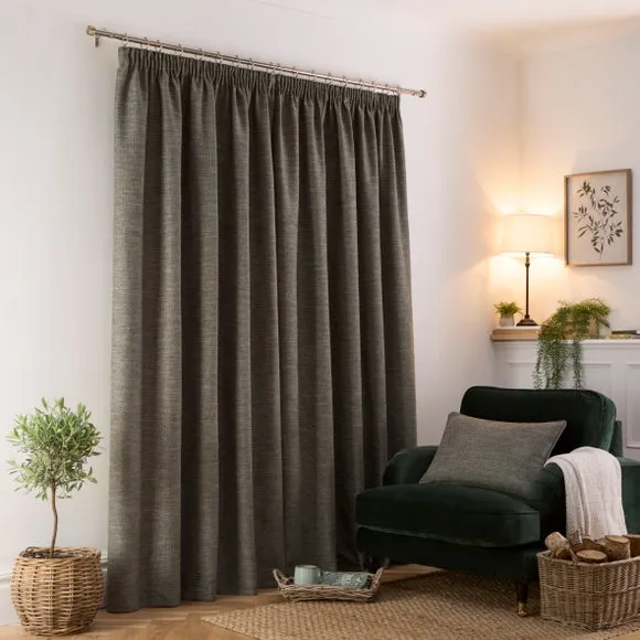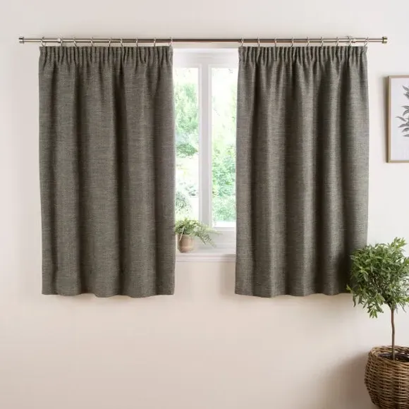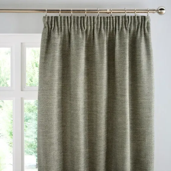 * 1 pair - includes 2x curtain panels* Timeless herringbone design* Polyester lining to provide privacy* Pencil pleat header creates a classic drape* Weighted corners to ensure a beautiful hang Our Churchgate Swithland curtains feature a timeless herringbone design that is a perfect finishing touch for your windows. Fully lined to improve insulation and provide added privacy, these curtains are great for use in any room. The pencil pleat header and weighted corners will help create drape to help your curtains hang beautifully. Coordinate the curtains with the matching cushion for a stylish room look. The size of the curtains shown is the size of 1 panel, you will receive 2 panels of this size. Choose the width that is closest to your pole length for full look. This collection is verified by OEKO-TEX and independently tested for harmful substances as well as manufactured using sustainable processes under socially responsible working conditions.