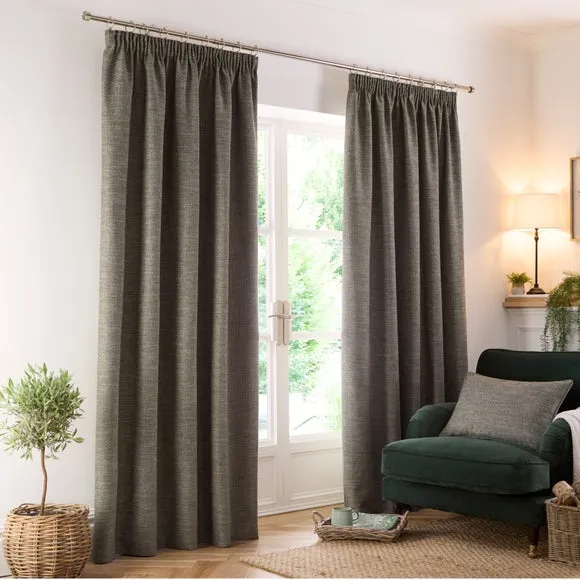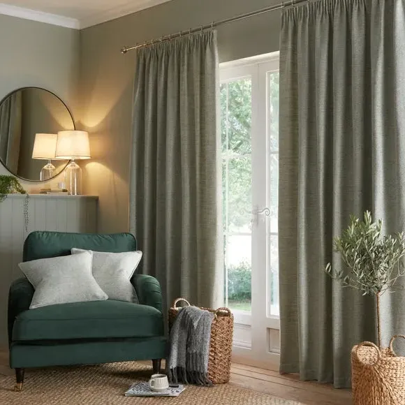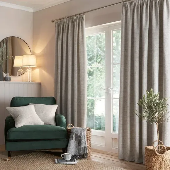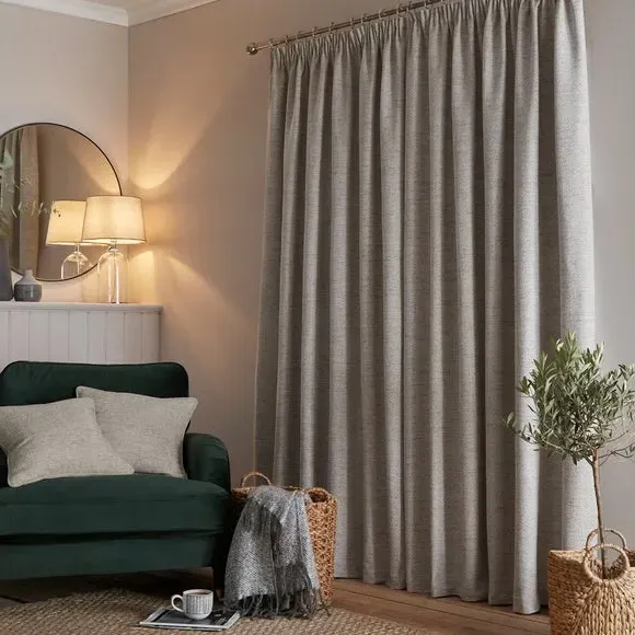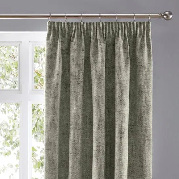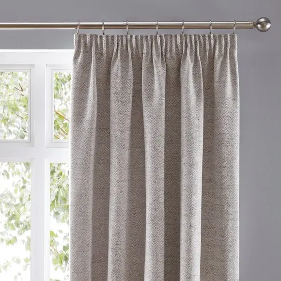 The curtains feature a timeless herringbone pattern with pencil pleat headers that create classic draping. Each pair includes two panels with polyester lining that provides privacy and improves insulation. The weighted corners ensure the curtains hang beautifully, while the fully lined construction adds durability and light control.