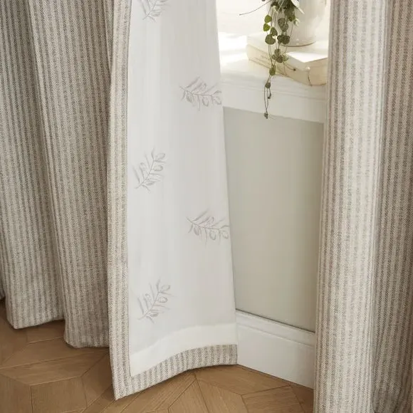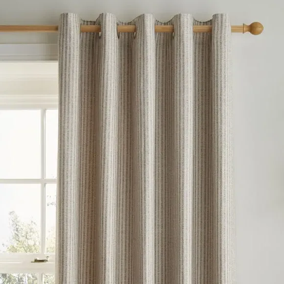 * Includes 2 x curtain panels* Herringbone striped design* Recycled polyester printed lining* Durable brushed steel eyelet header Perfect for coordinating with any room style, these curtains have a beautifully crafted herringbone striped design. The pattern has been printed onto a 100% polyester face fabric and lined with a recycled polyester lining that helps create drape and add fullness. The lining will help preserve the design and front fabric from fading, making these curtains long-lasting. Complete with a durable brushed steel eyelet header, these curtains are designed for use with a curtain pole. Coordinate the curtains with the matching cushion for a stylish room look.**Please note:** Pattern matching can not be guaranteed across multiple pairs of curtains.