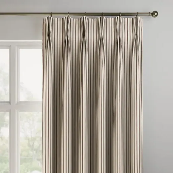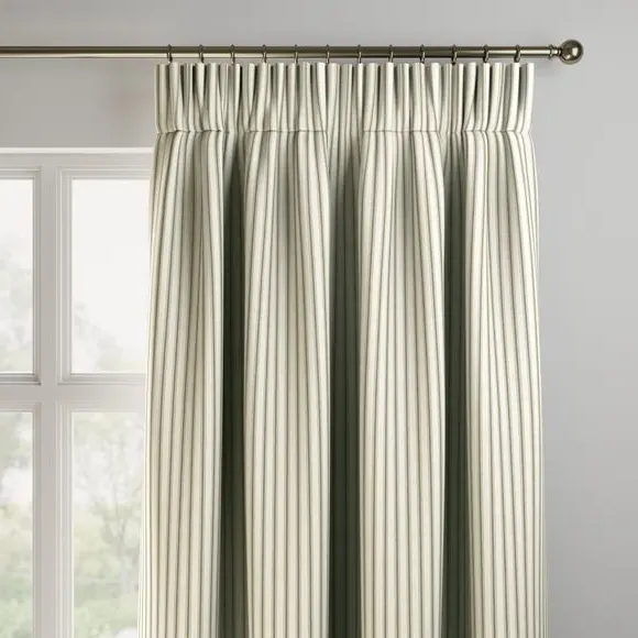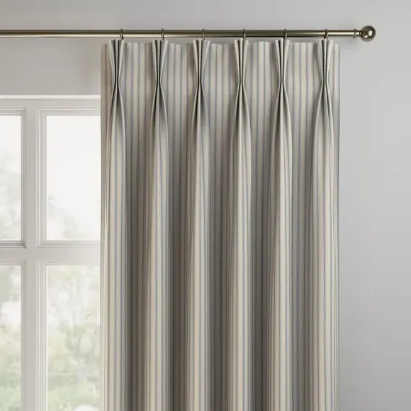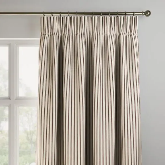 * Selection of header types available* Made to your individual measurements* Timeless striped design* Made from 100% cotton* Available in a choice of colourways* Coordinating items available to purchase separately These Made to Measure curtains boast a selection of header types tailored to your preferences. Indulge in the luxury of customisation as each curtain is expertly made to your individual measurements, ensuring a perfect fit for your windows. The timeless striped design adds a touch of sophistication, while the use of high quality 100% cotton ensures both durability and a luxurious feel. Choose from a range of colourways to effortlessly complement your decor. Why not shop the coordinating Made to Measure and Made to Order items available to purchase separately, for a complete look? Please note: If your measured width is over 124cm your curtains will come with a fabric join to provide the full width required.