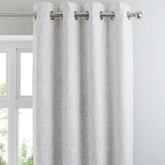 * 1 pair - includes 2x curtain panels* Damask style pattern* Chenille jacquard fabric* Eyelet header* Fully lined* Matching cushion available Adorned with a sophisticated damask style pattern, this pair of curtains from the Dorma collection have been crafted from a heavyset luxurious chenille jacquard fabric. Featuring a modern eyelet header, these curtains have a fabulous undulating drape, ensuring they look striking in every room they are placed. These curtains are fully lined and are available in a range of sizes. The size of the curtains shown is the size of 1 panel, you will receive 2 panels of this size. Choose the width that is closest to your pole length for full look.**Dorma**Established in 1921, Dorma is a British heritage brand synonymous with quality, luxury and impeccable attention to detail. Dorma; our name is your guarantee.