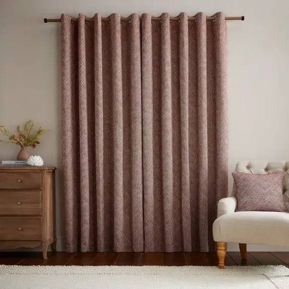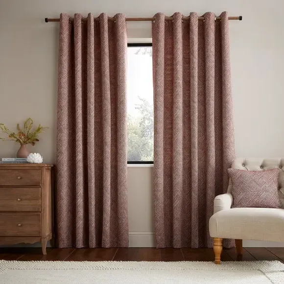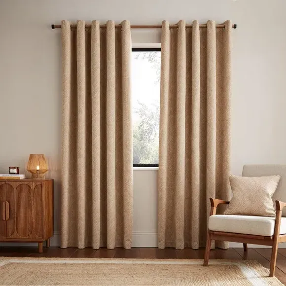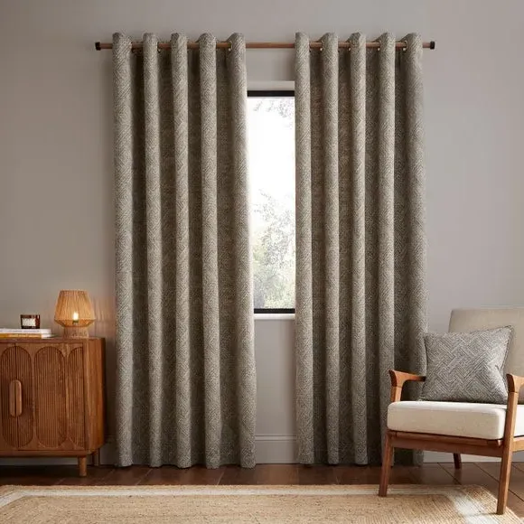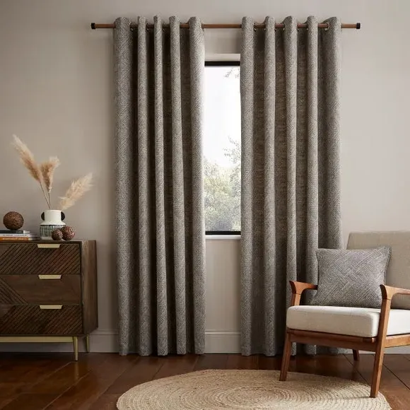 * Includes 2 x Curtain Panels* Stylish, Global Design* Chic Eyelet Header* Matching Cushion Available Bring a touch of wanderlust to your windows with this eye-catching pair of curtains, featuring a stylish global-inspired design on beautifully textured fabric. The eyelet header makes hanging a breeze — no fuss, just instant impact. Available in a range of easy-to-style colours, with a matching cushion to complete the look.