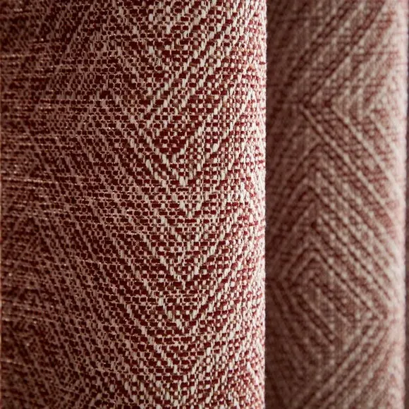 The curtain set features a global-inspired design on textured fabric, creating visual interest with its wanderlust motifs. Its eyelet header provides easy installation while maintaining clean lines, and the red tone adds warmth to any space. The set includes two panels with matching hardware, offering both style and functionality.
