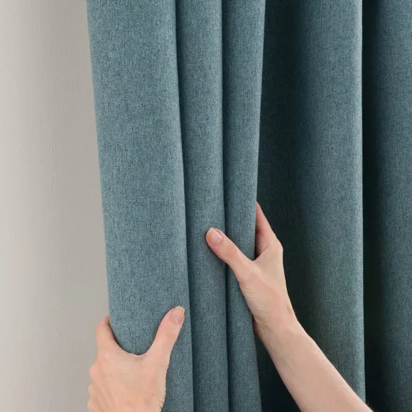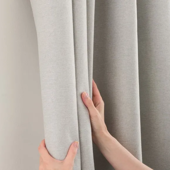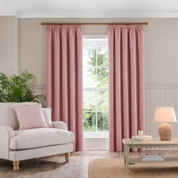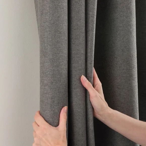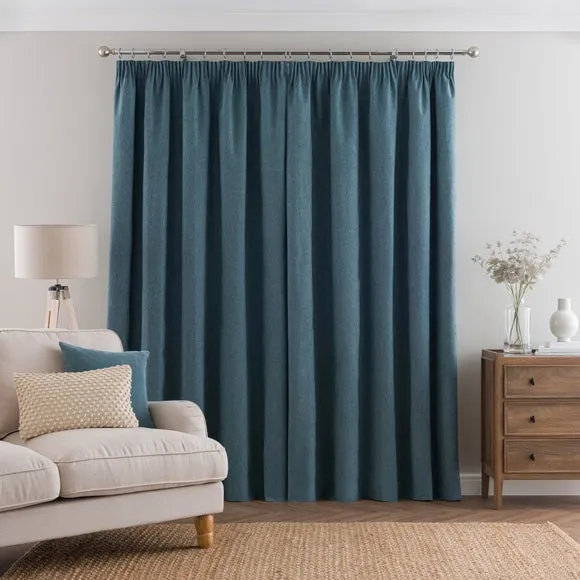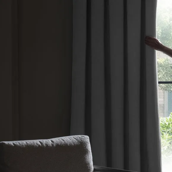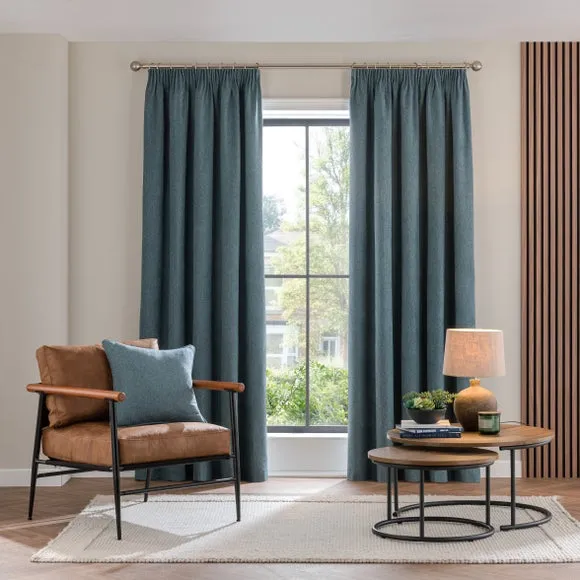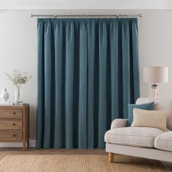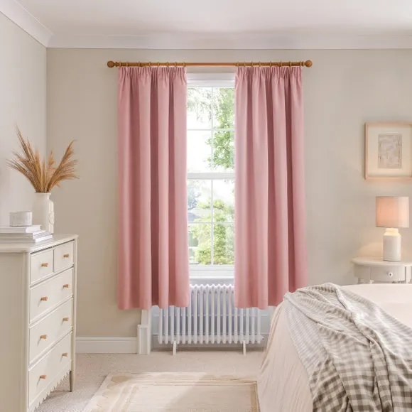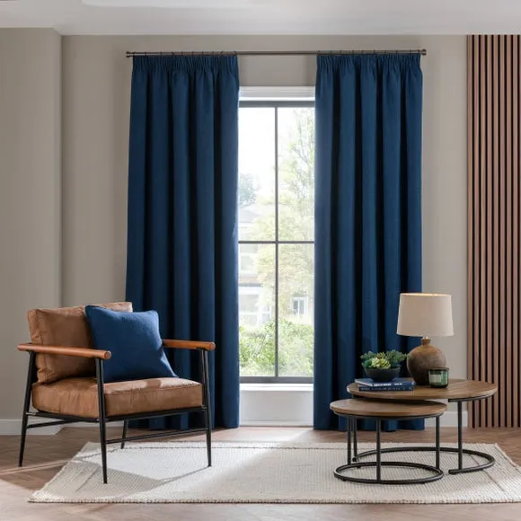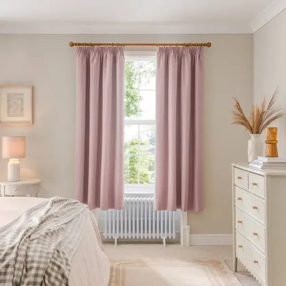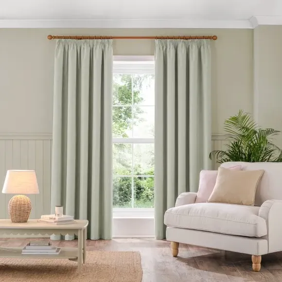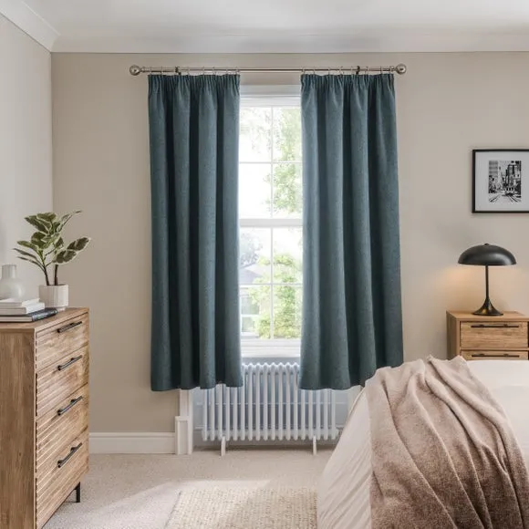 * 1 pair - includes 2x curtain panels* Soft brushed luna fabric* Blackout coating to keep out external light* Thermal properties to help regulate room temperature* Pencil pleat header* Available in a choice of colours and sizes Refresh your home with our stylish Luna blackout curtains, designed with a modern pencil pleat header for a stunning gathered appearance. This pair of curtains are made with high quality materials and feature a brushed effect finish for a soft and luxurious touch. Complete with a blackout coating to stop unwanted light entering your home and with temperature smart properties, the Luna pencil pleat curtains are effective at keeping out draughts in winter and blocking out heat in the summer, perfect for ensuring a good night's sleep everyday. The size of the curtains shown is the size of 1 panel, you will receive 2 panels of this size. Choose the width that is closest to your pole length for full look.