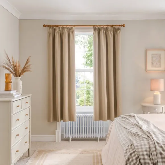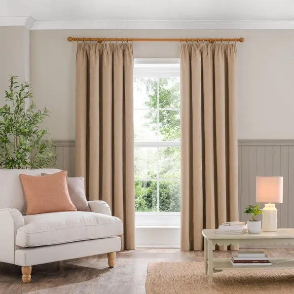 Blackout Curtains Pencil Pleat - Dark Sand, Brushed