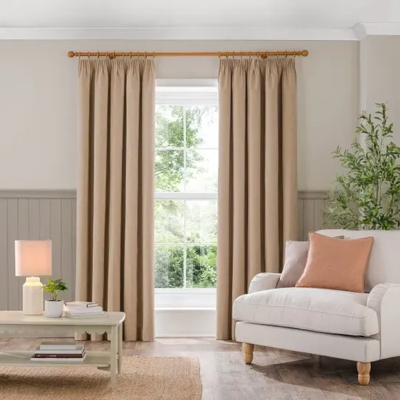 Home  /  Bedding & Textile  /  Curtains  /  Blackout Curtains Pencil Pleat - Dark Sand, Brushed