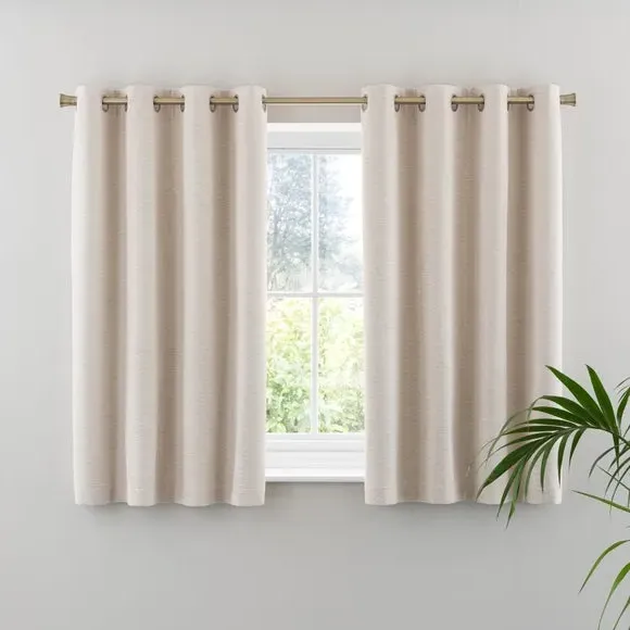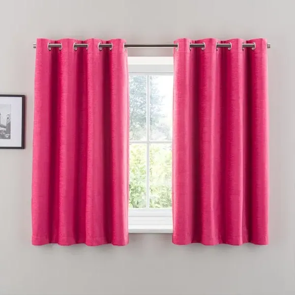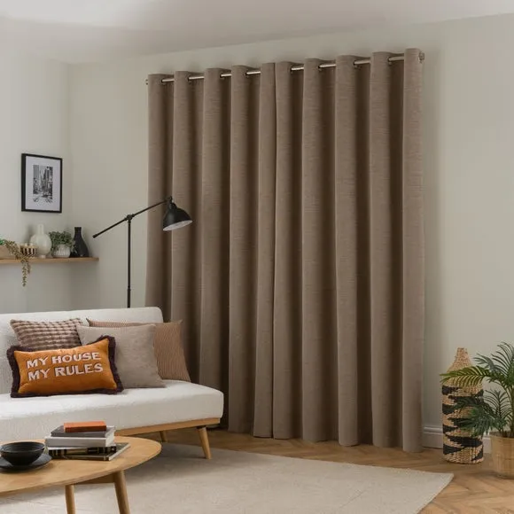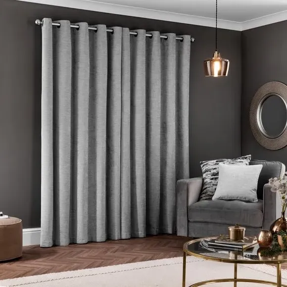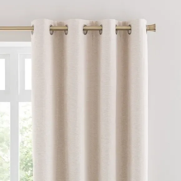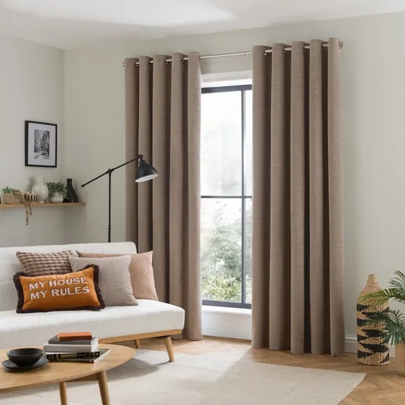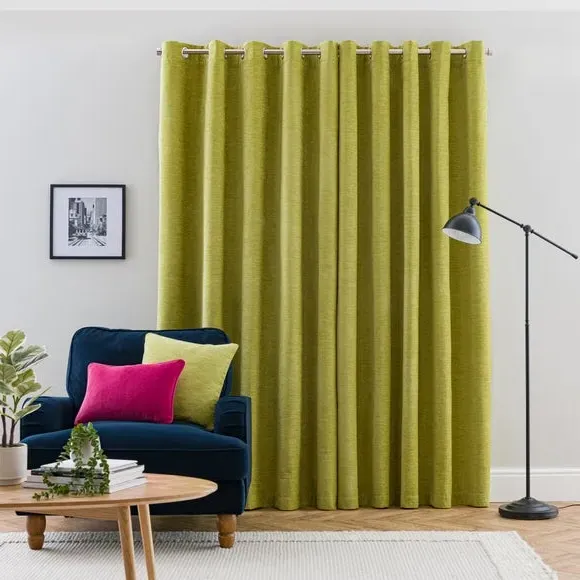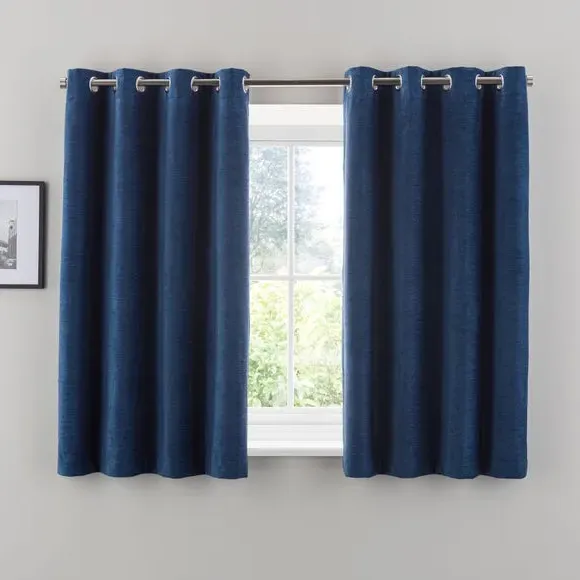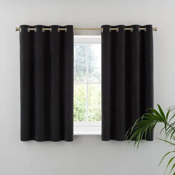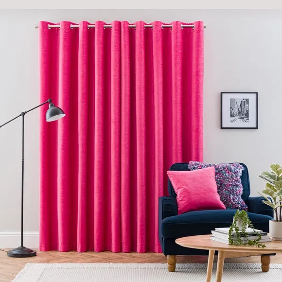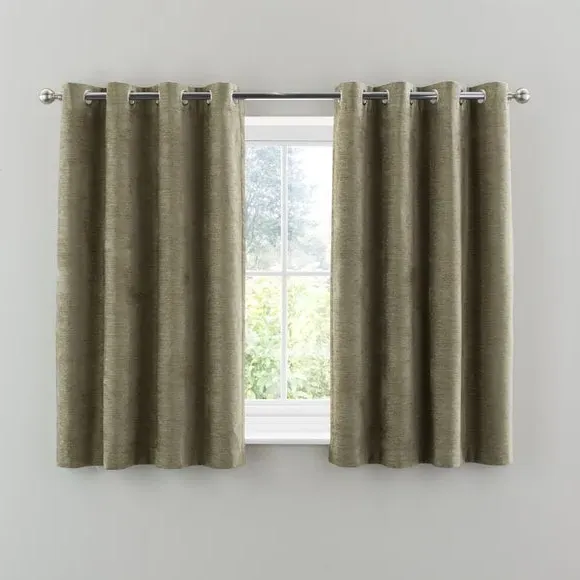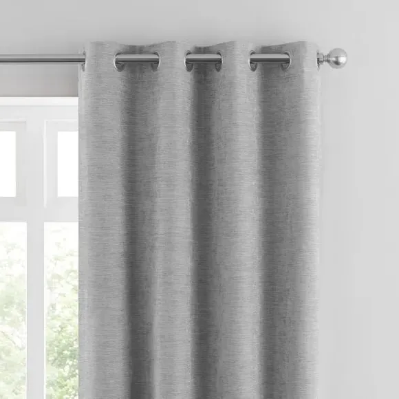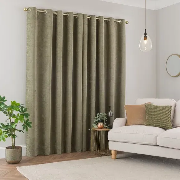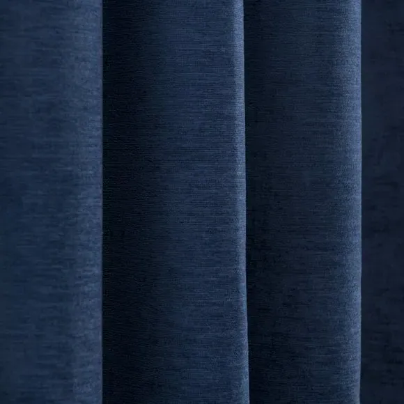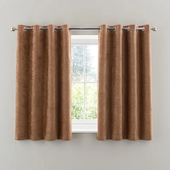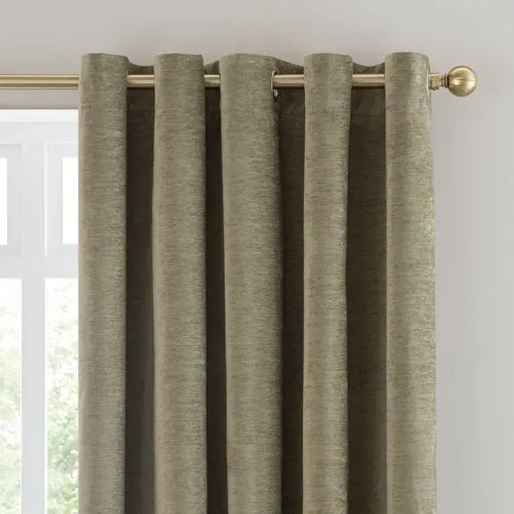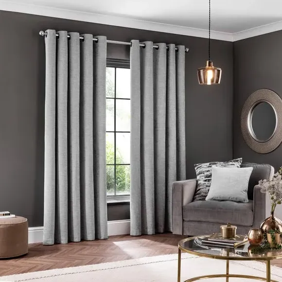 * Soft, woven chenille curtain* Blackout finish to keep out external light* Thermal Insulation* Eyelet header* Coordinating cushion available Our Genoa woven chenille curtains add a welcoming touch to your living areas. Made from 100% recycled polyester and crafted with a blackout finish, this pair of curtains is perfect to block out light and to keep draughts away in winter and to block out the heat in summer. With the easy-to-hang eyelet header, you'll have these curtains up and ready in no time.
