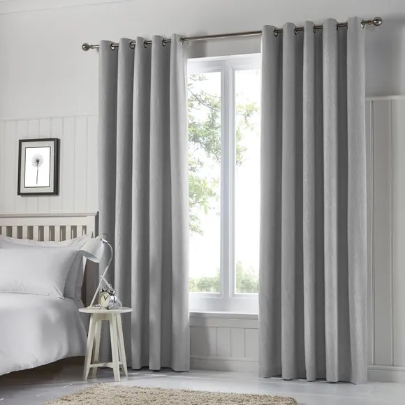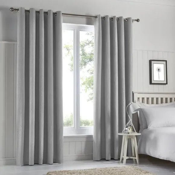 * Includes 2 x Curtain Panels Complete with a modern eyelet header and available in a range of drop lengths, this pair of Tyla curtains features a subtle textured print and have been made with a blackout lining to minimise external light entering the room.