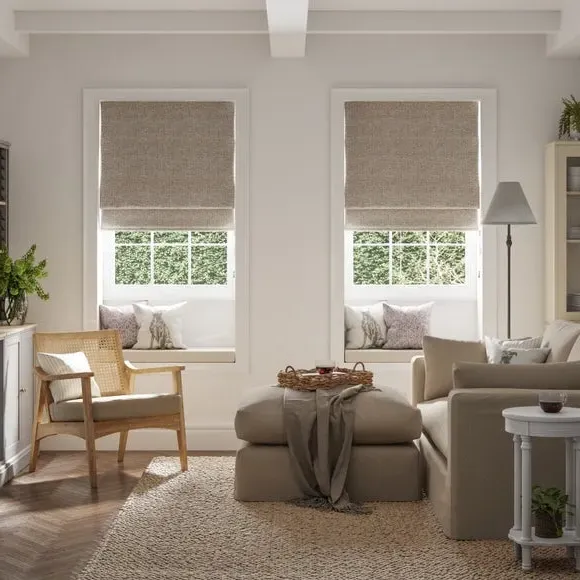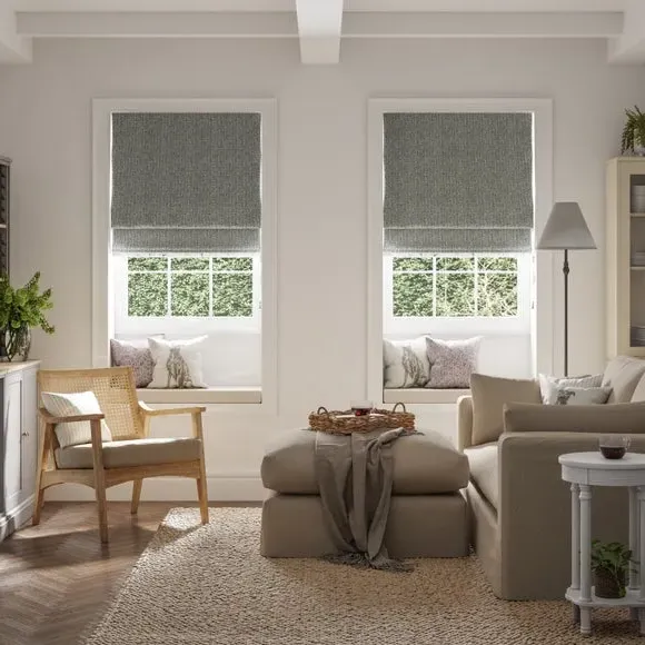 The Roman Blind offers complete light control with its blackout lining, featuring a textured two-tone weave that adds visual depth. Crafted from recycled polyester, the blind provides durability while reducing unwanted external light. The blackout lining ensures maximum privacy and darkness, and all fixings are included for straightforward installation.