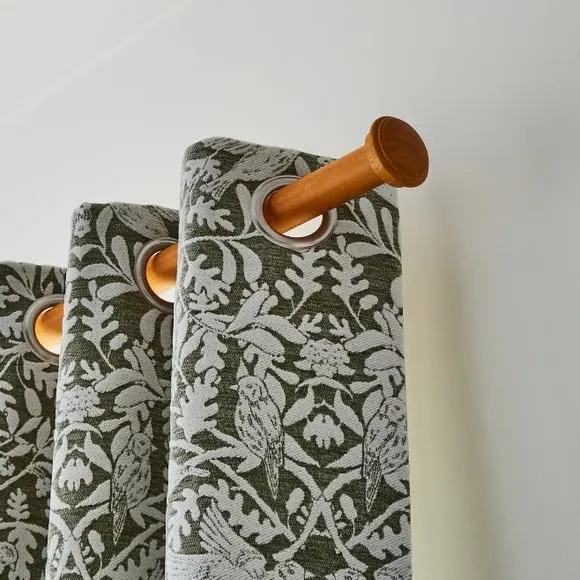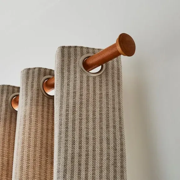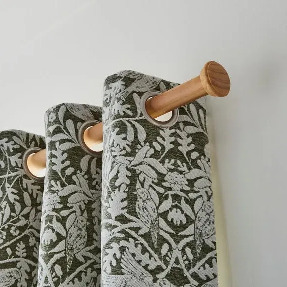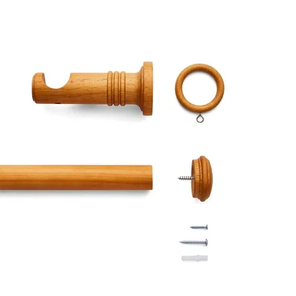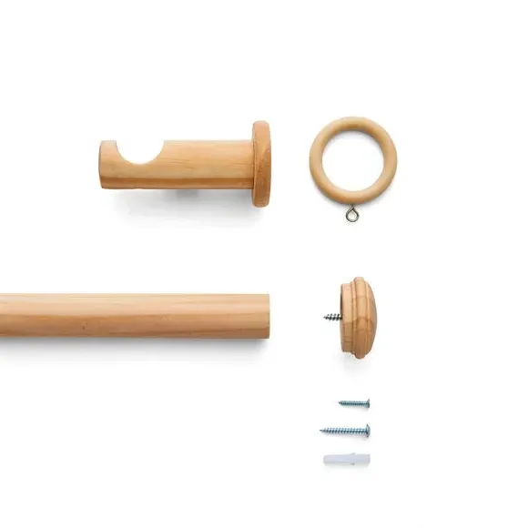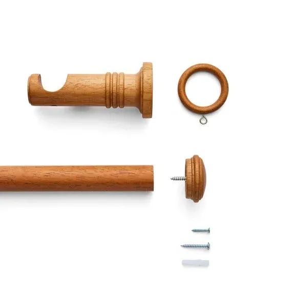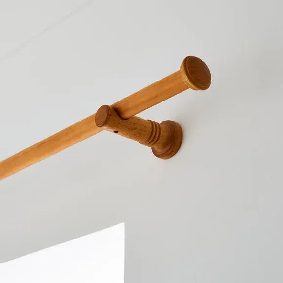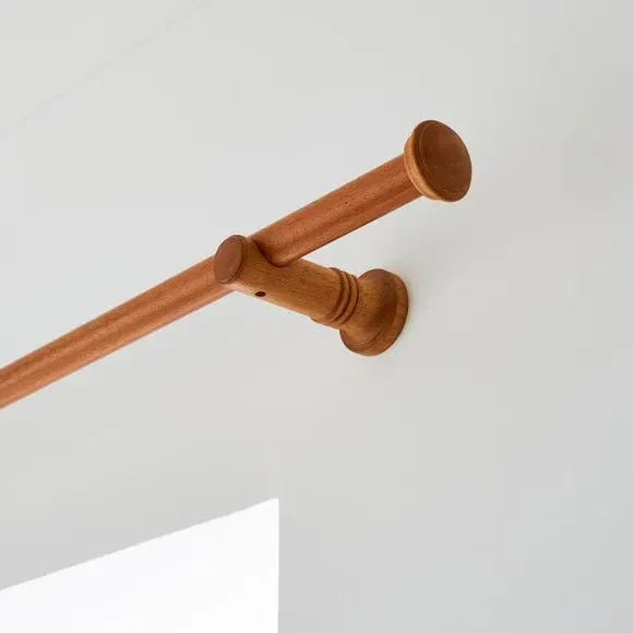 * Decorative stud finial with tiered detail* 28mm diameter* Available in multiple wood finishes* Ribbed cylinder brackets* Made from FSC wood If you love understated detail, the End Cap Stud pole kit is for you. The subtle stud finials are paired with decorative ribbed cylinder brackets, creating a cohesive and stylish finish. With multiple sizes and wood finishes to choose from, this 28mm pole kit includes all fittings and is made from FSC wood for extra peace of mind.