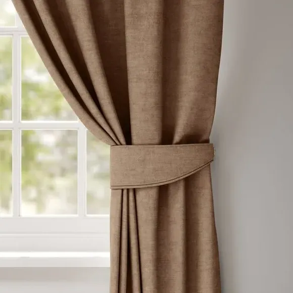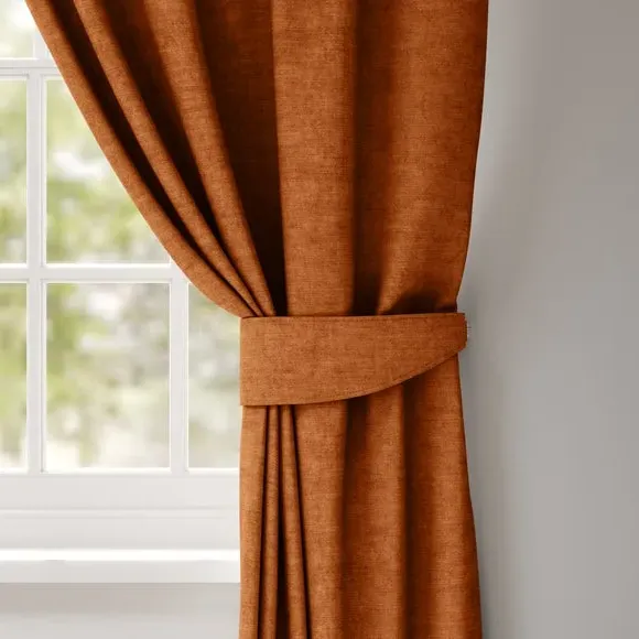 * Luxurious Velvet composition* Plain design in a range of rich colourways* Available with a plain or piped edge* Coordinating Made to Measure and Made to Order items available to purchase separately Featuring a luxuriously soft velvet finish and available in a range of rich, eye-catching colours, our curtain tiebacks are the perfect finishing touch to elevate your drapery. Choose between plain or piped edges for a tailored look that complements your curtains beautifully. These tiebacks not only add a touch of elegance but also provide a practical way to frame your windows, enhancing the overall aesthetic of your room. The perfect accessory to complete a stylish, inviting atmosphere in your home.
