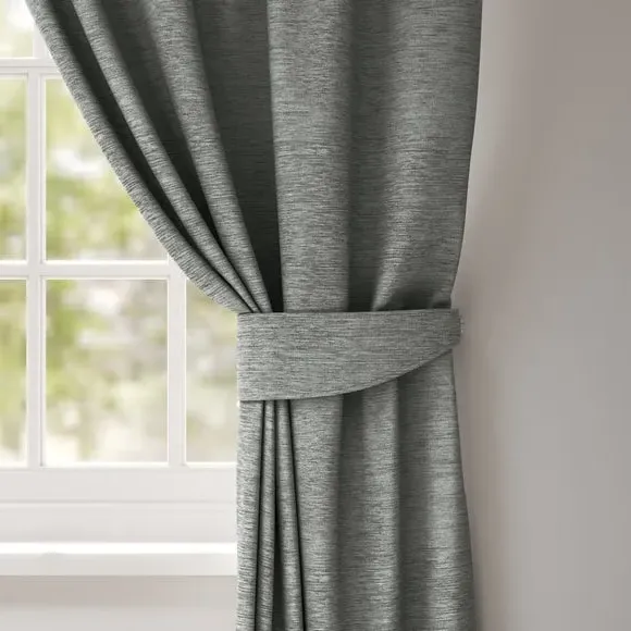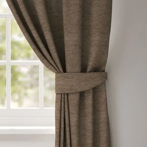 The curtain tieback features a classic textured design that provides both function and style. Available with plain or piped edge options, it offers versatility to complement different decor preferences. The tieback neatly holds curtains in place while adding visual interest to window treatments.